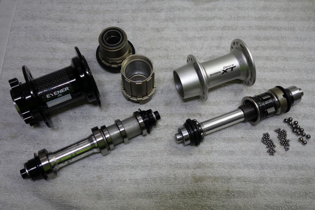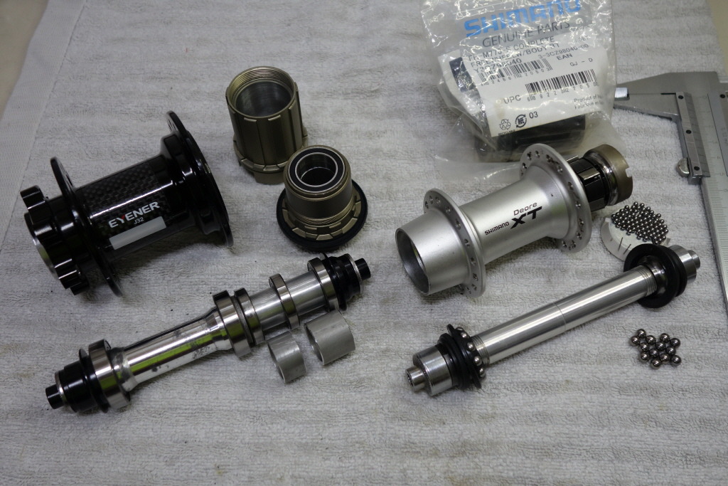 좌로 아이너 J32허브, 우로 시마노 Deore M770 허브