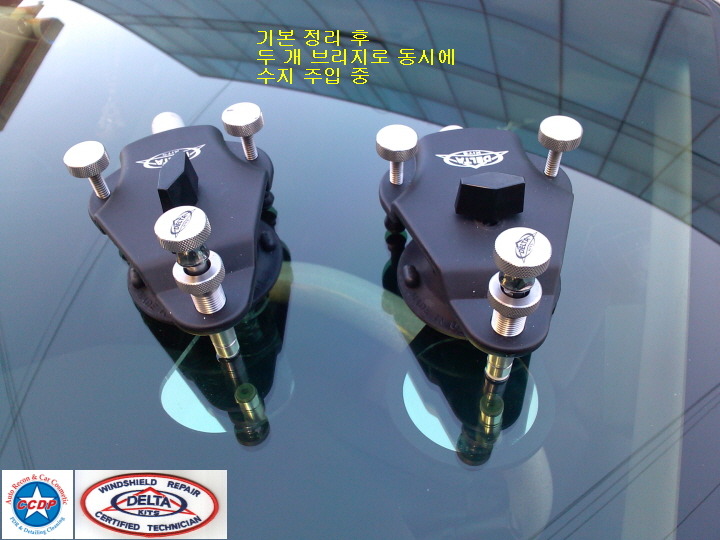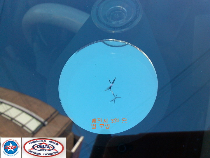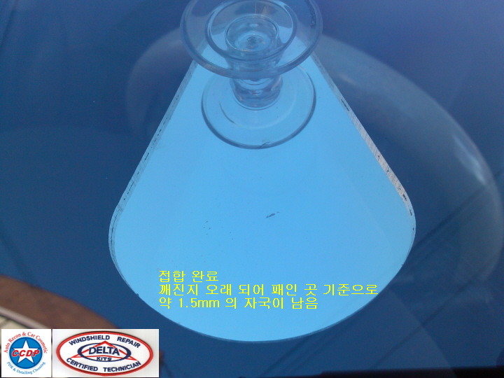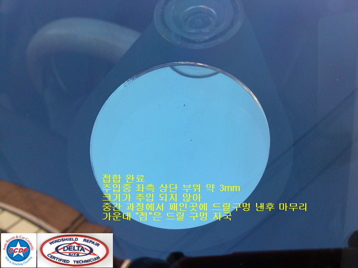 - 별 모양은 깨진지 3일 밖에 지나지 않았지만, 좌측 상단 부위의 약 2mm 가 정상 적인 진행에 접합 수지가 들어가지 못하여, 중간에 드릴 구멍을 만들고 다시 주입 하여 전체적으로 깨진 단면은 모두 접합 수지가 들어 갔음.