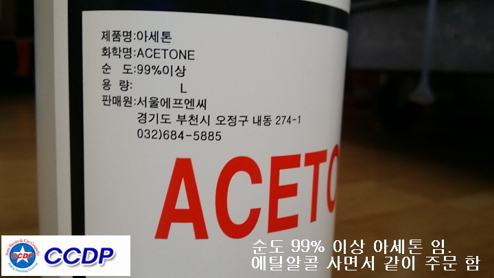 1. 아세톤을 사용 하시는 경우 "아세톤 1: 물 2" 를 혼합 해서 사용 하세요. 매우 중요 합니다.