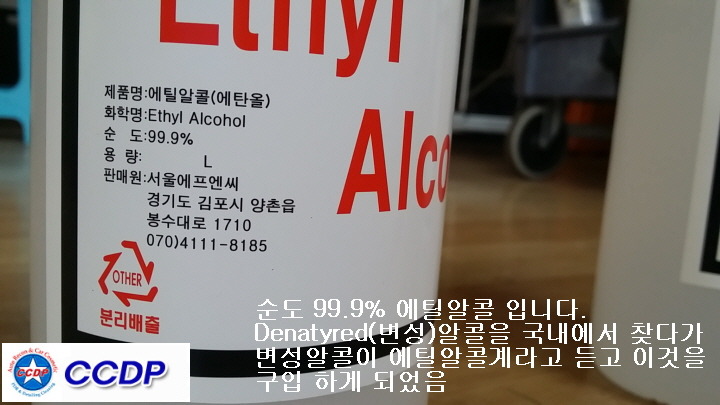 어제(2014년 10월20일)에 미국 PDR 기술자들이 글루 제거용으로 사용하는 "Denatured Alcohol (변성 알콜)"를 한국에 구해 보려고 웹서핑 하면서 어떤 알콜회사에 연락을 할 수 있었고, 변성 알콜이 한국에서는 에틸 알콜로 표현 한다는 말을 듣고, 순도 99% 에틸 알콜을 찾게 되었습니다.