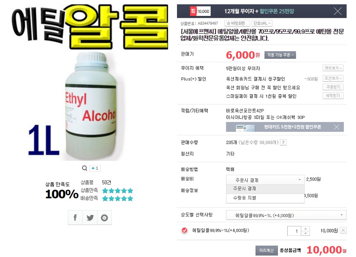 주문 할 때, 아세톤도 순도 99%를 팔기에 이것도 구입 하였습니다.