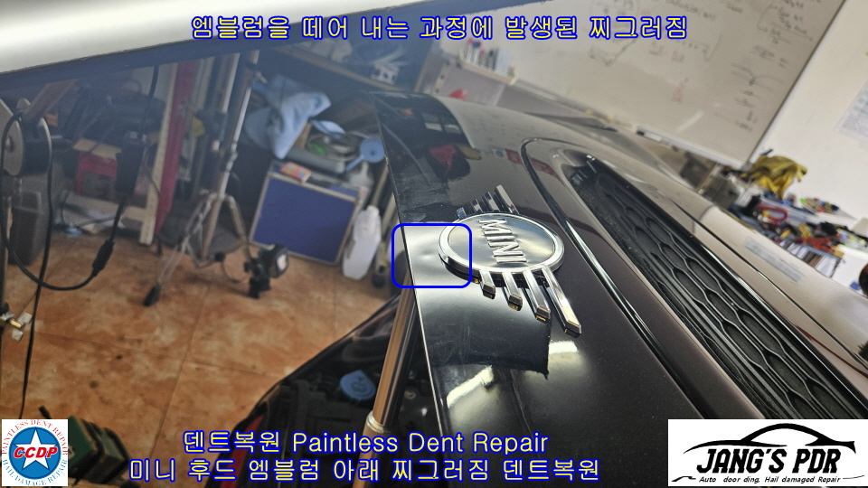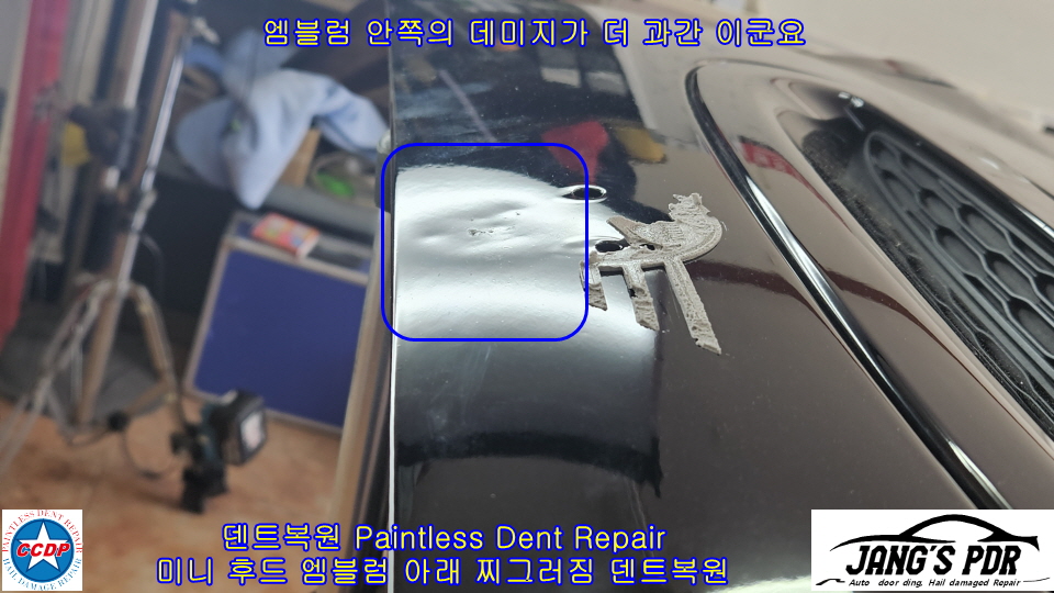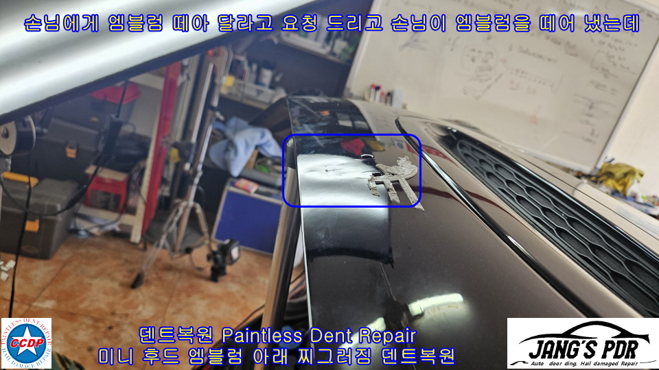 [Small]미니 후드 본닛 엠블럼 떼어 내는 과정에 발생된 찌그러짐 덴트복원 문콕 우박덴트 방배동덴트 서울덴트복원