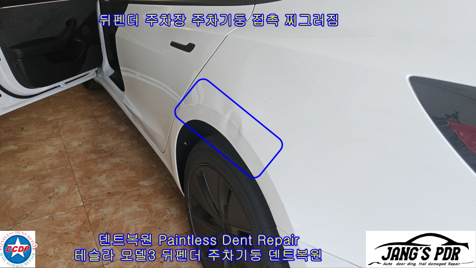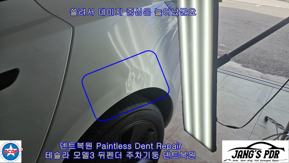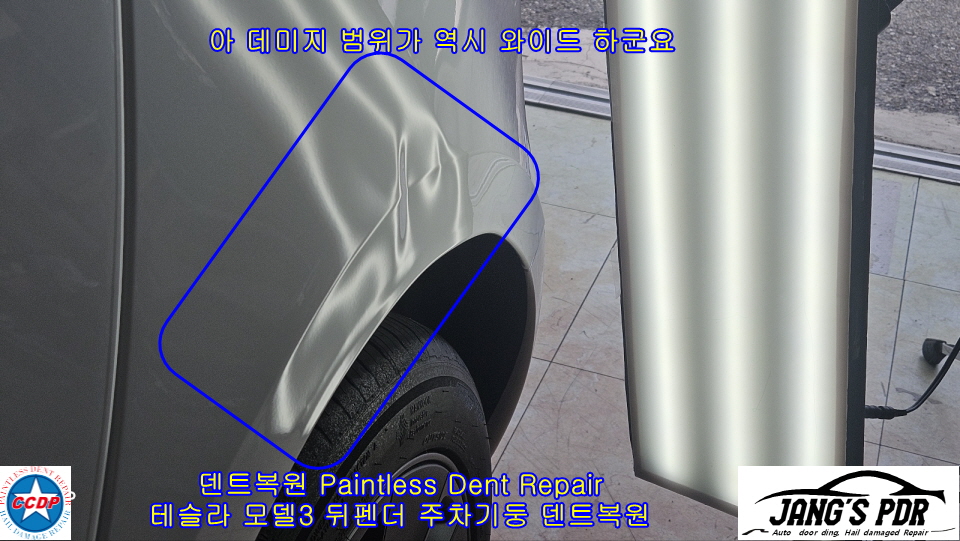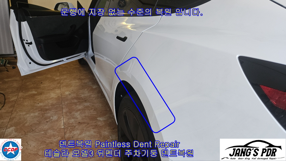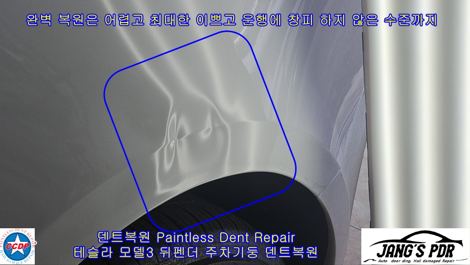#테슬라_모델3_덴트복원 #테슬라_모델3_글루덴트복원 #테슬라_모델3_문콕복원 #테슬라_모델3_뒤펜더_덴트복원