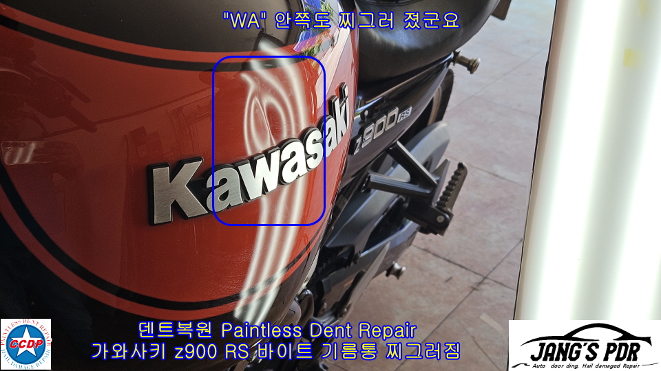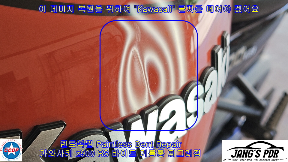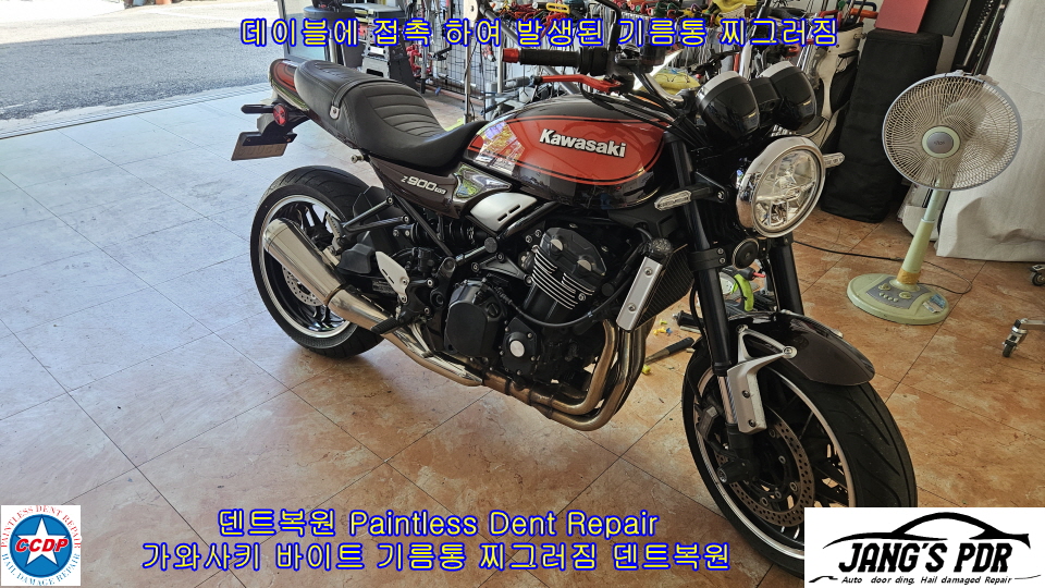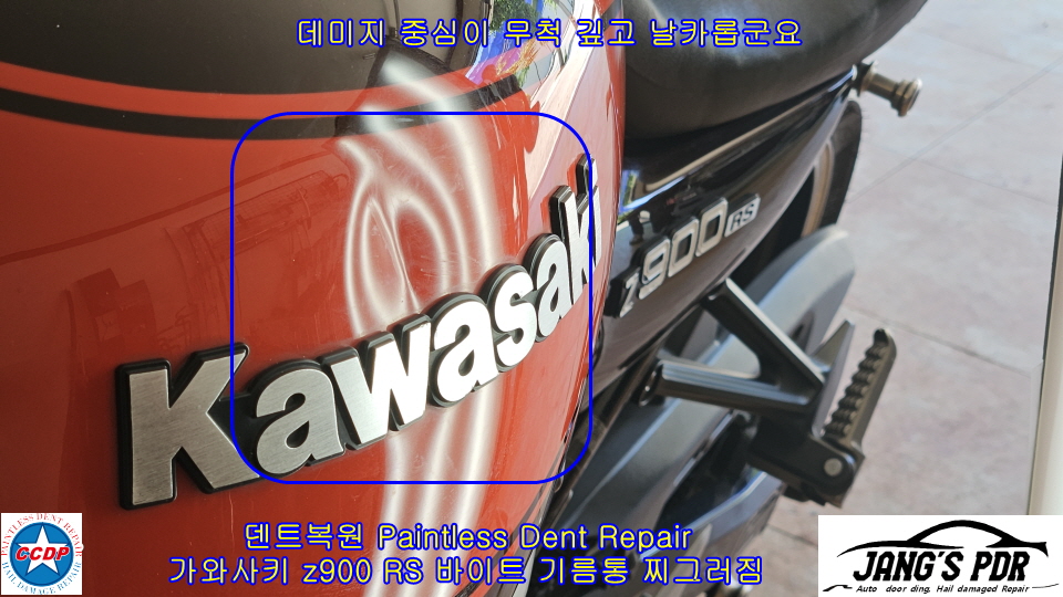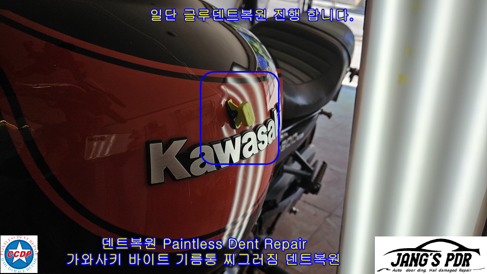 #가와사키_z900_덴트복원 #가와사키_z900RS_기름통_덴트복원 #가와사카_z900RS_기름통_글루덴트복원