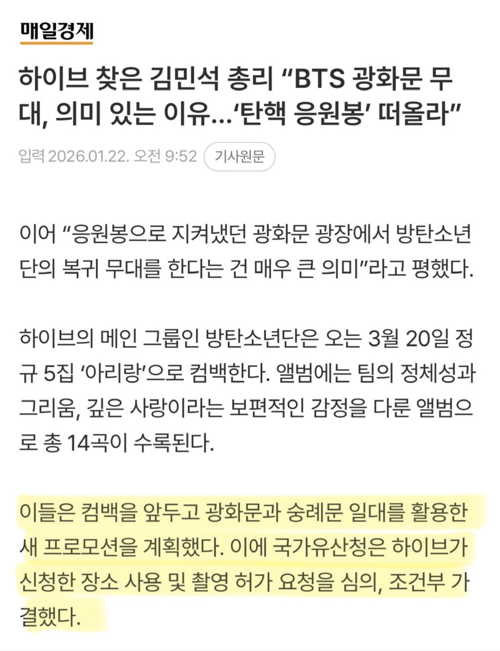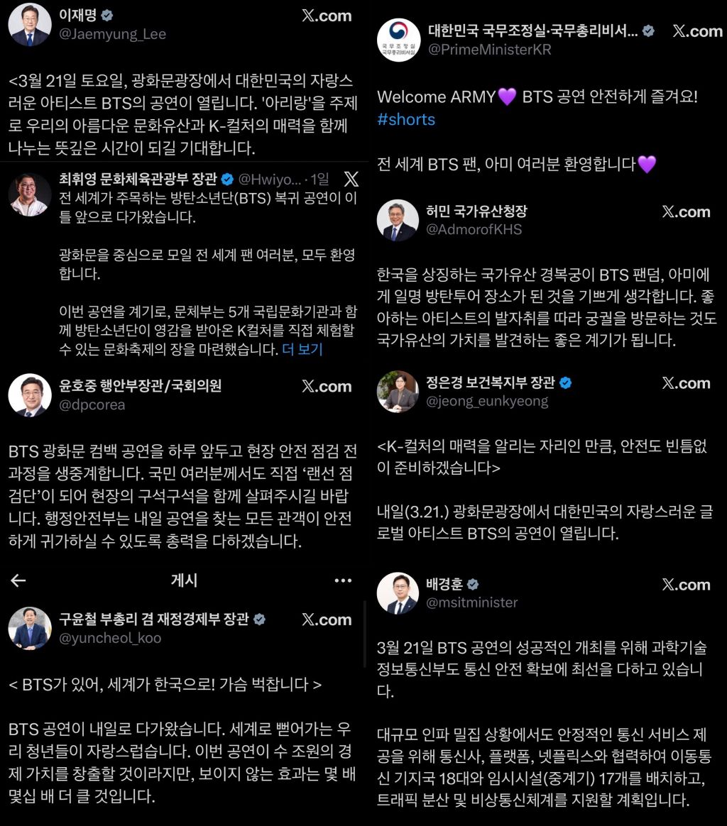 이게 나라망하는거지 별겁니까? ARMY 팬덤에 숟가락 얹으려고 대통령, 총리, 행안부장관 지랄 염병 떠는거 참긴했는데