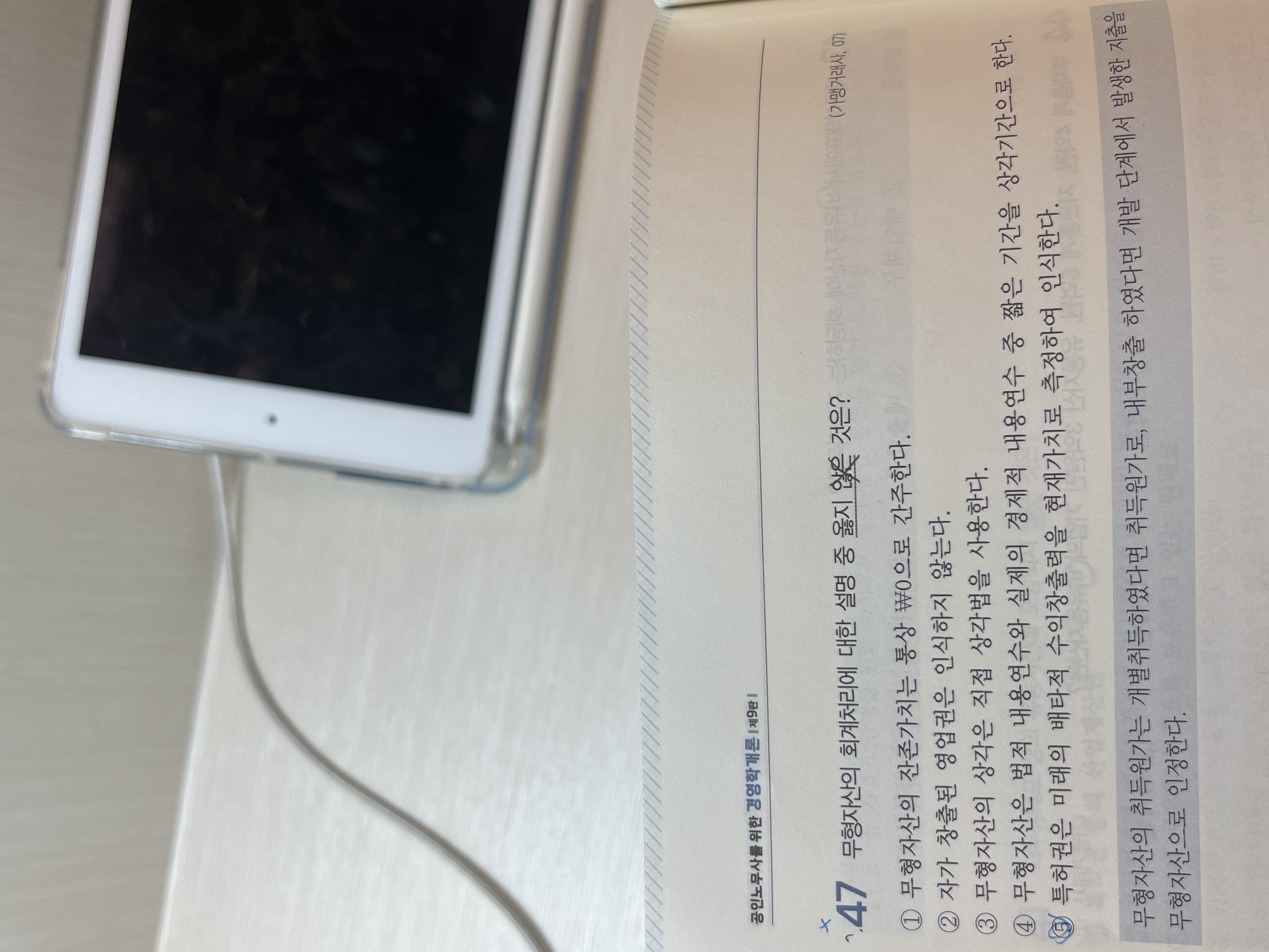 외부에서 구입하였다면 그 <취득원가>로 자산(특허권)으로 처리합니다. 따라서 5번 지문에서 "미래의 배타적 수익창출력을 현재가치로 환산하여 인식"한다는 것이 틀린 설명입니다.