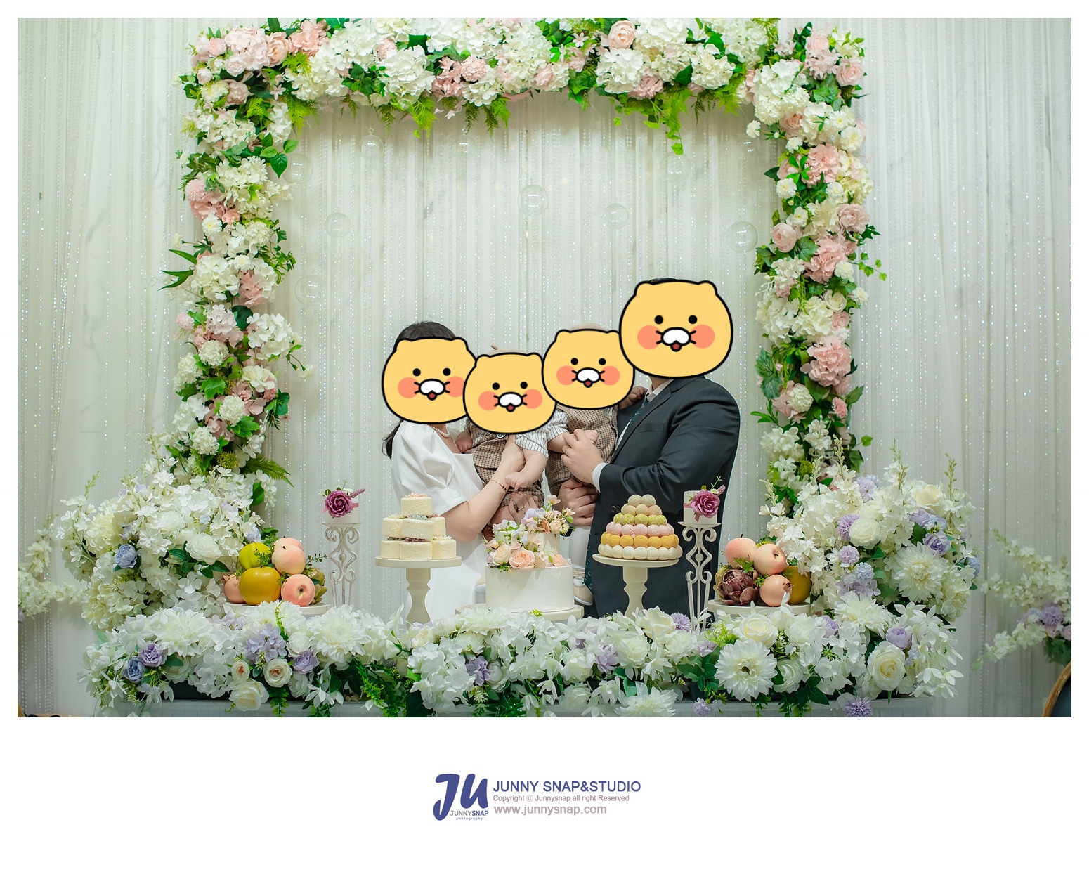 돌잔치 준비하면서 가장 신경 쓴 부분이 사진이었는데, 조명 좋은 예쁜 장소 덕분에 결과물이 너무 만족스러웠어요.