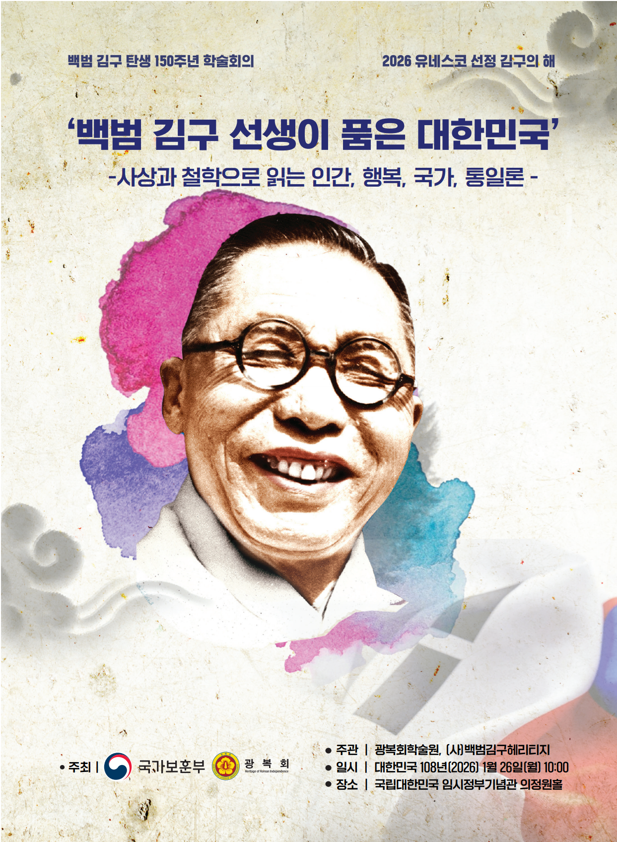 지난 2026년 1월 26일(월) 대한민국 임시정부기념관 의정원홀에서 백범 탄생 150주년 기념 학술대회가 열렸다.