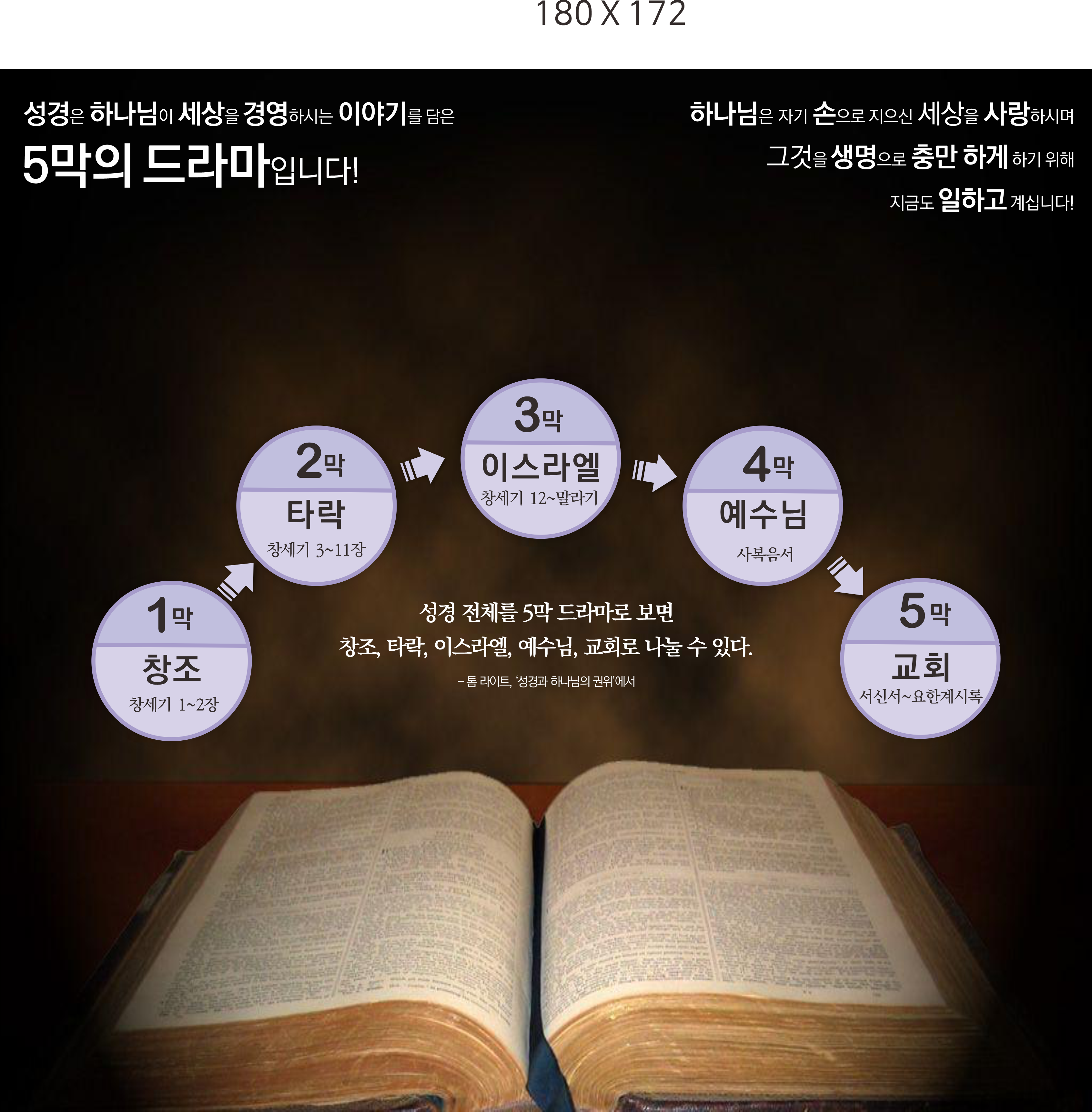 영원에 잇대어 살아가는 여행자를 위한 지도는 창조와 타락, 그리고 새 창조와 완성된 하나님 나라를 한 눈에 보여줍니다. 그 지도에서 하나님은 하늘과 땅을 만드시고 하늘에 계시면서 땅을 인간에게 맡기십니다. 그리고 땅을 맡은 인간의 타락으로 땅이 다시 공허하고 혼돈하게 될 때 하나님은 자신의 대리인들을 보내셔서 이 땅을 새롭게 하십니다. 그들은 아브라함이며 이스라엘입니다. 그리고 역사의 절정에 예수 그리스도를 보내셔서 땅을 새롭게 하시고 그 일을 지속적으로 맡아 수행할 대리인들을 세우십니다. 그 대리인이 바로 교회입니다.