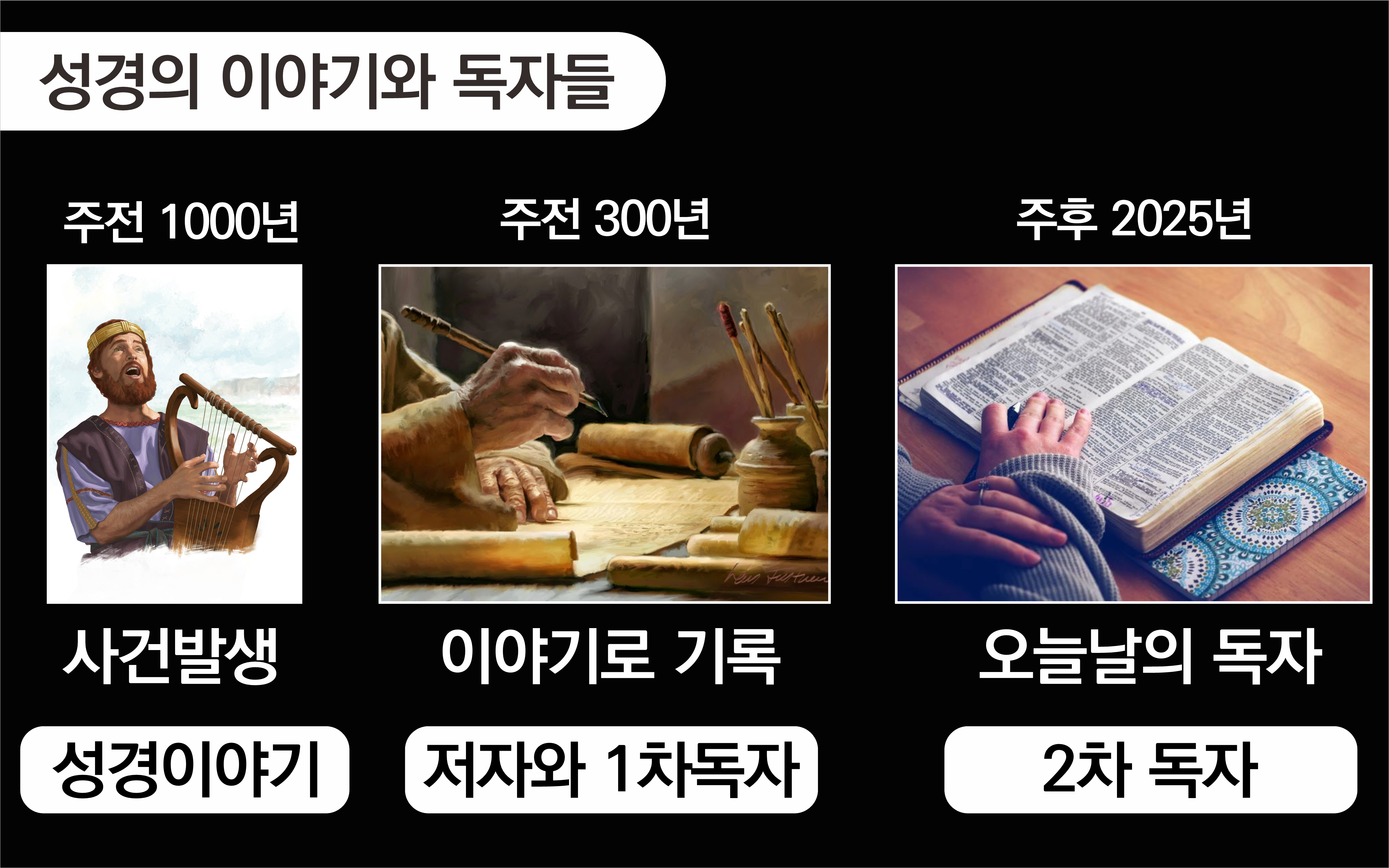 그런데 고전과 같이 성경은 시대를 초월하여 사람들에게 삶의 의미를 깨닫게 합니다. 그래서 우리는 이 성경이 마치 오늘 우리를 위해서 기록된 것처럼 느껴지기도 합니다. 그 이야기가 바로 오늘 우리와 밀접하게 관련이 있는 것처럼 깨달아집니다. 마치 나에게 하는 말씀처럼 느껴진다는 말입니다. 그런 책이 바로 고전이며 경전입니다. 하지만 우리는 우리가 읽는 성경이 무척 오래 전에 기록되었음을 기억할 필요가 있습니다. 그리고 우리보다 먼저, 아니 가장 먼저 이 성경을 읽어야 했던 독자들이 있음을 기억할 필요가 있습니다.
