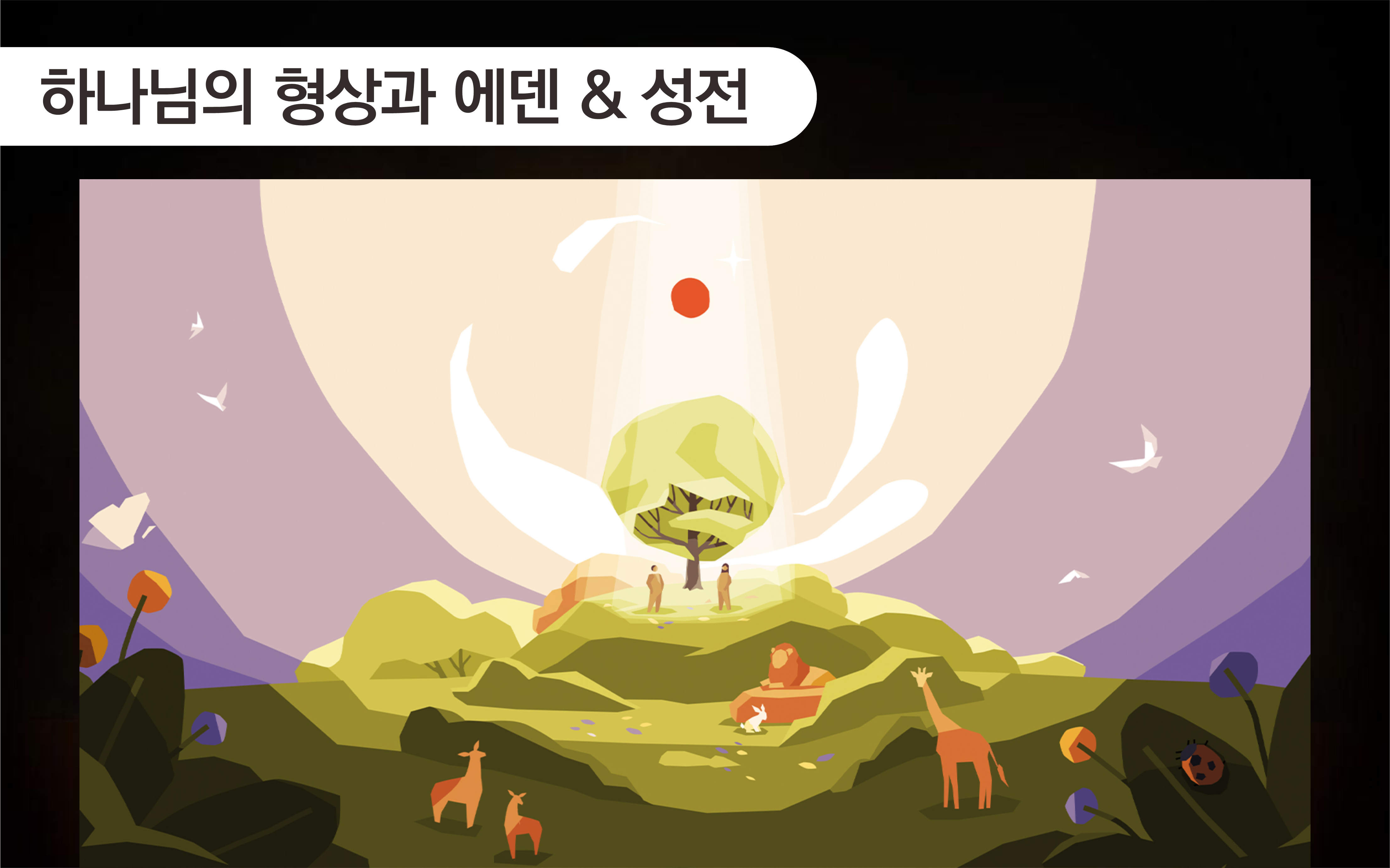 하나님은 인간을 자기 형상으로 지으시고 자기 앞으로 인도하셨습니다. 그것이 에덴동산이며 성전입니다. 인간은 하나님 앞에서 하나님을 경배함으로 에덴동산과 성전으로부터 온 세상을 회복하는 창조의 사역에 동참합니다. 성경이 말하는 창조는 언제나 혼돈으로부터 질서를 세우며, 공허한 땅에 생명으로 충만하게 채우는 활동입니다. 그러므로 하나님의 새 창조는 지금도 계속되고 있습니다. 인간이 하나님의 제사장으로서 하나님을 바르게 경배하고 그 빛나는 영광을 세상이 나타낼 때 인간은 하나님의 형상으로서 하나님의 새 창조 사역에 동참하게 됩니다.