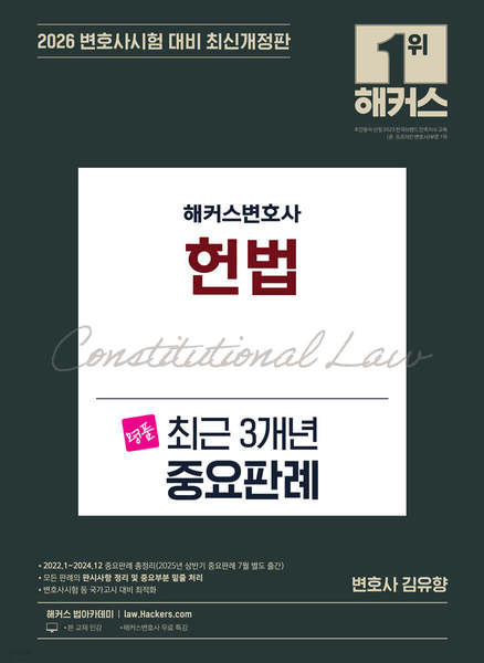 <2026 해커스변호사 헌법 최근 3개년 중요판례>는 변호사시험 및 각종 국가고시 시험 완벽 대비를 위해 최근 3년간 중요 헌법판례를 주제별로 담아낸 판례집입니다.