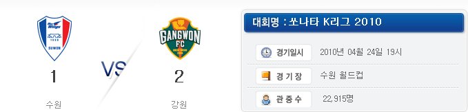 [K리그][2010 소나타 K리그 9R] 수원 vs 강원 골장면 (리그 5연패 늪에 빠진 수원) 작성자Makelele|작성시간10.04.24|조회수2,952 목록 댓글 69 글자크기 작게가 글자크기 크게가 다음검색 현재 게시글 추가 기능 열기 북마크 공유하기 신고 센터로 신고 댓글 댓글 69 댓글쓰기 답글쓰기 댓글 리스트 작성자FC서울★훈남 | 작성시간 10.04.24 강민수의 활약은 눈부셧지만 경기는 매우 재밌었네요. 작성자그냥서울사람 | 작성시간 10.04.24 김영후 잘하네...ㅎㄷㄷ 작성자『Free_*던힐』 | 작성시간 10.04.25 아 진짜 ㅡㅡ 작성자위봉형님 | 작성시간 10.04.25 강민수아오 작성자샤막¿구르퀴프 | 작성시간 10.04.26 강민수 넌안돼 댓글 전체보기