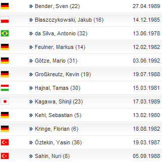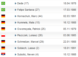17.데데 78년생 브라질/독일 27.산타나 86년생 브라질 44.마르크 호른슈 91년생 독일 15. 훔멜스 88년생 독일