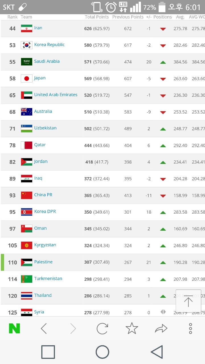 피파 예상 포인트로는 3월에는 아시아3위로 내려가는군요