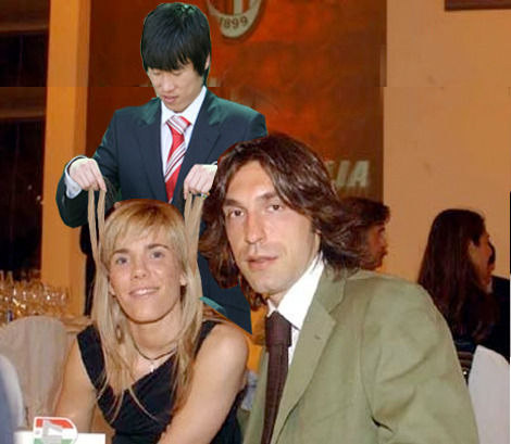 밀란구단 파티에 참석한 피를로와 그의 부인,그리고............................ 어느새 피를로 부인과 친해진 박지성