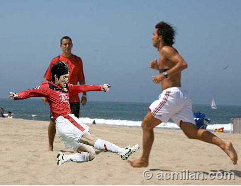 아름다운 해변에서 가볍게 조깅을 하고 있는 피를로, 그리고 ..................................이것은 박지성의 본능