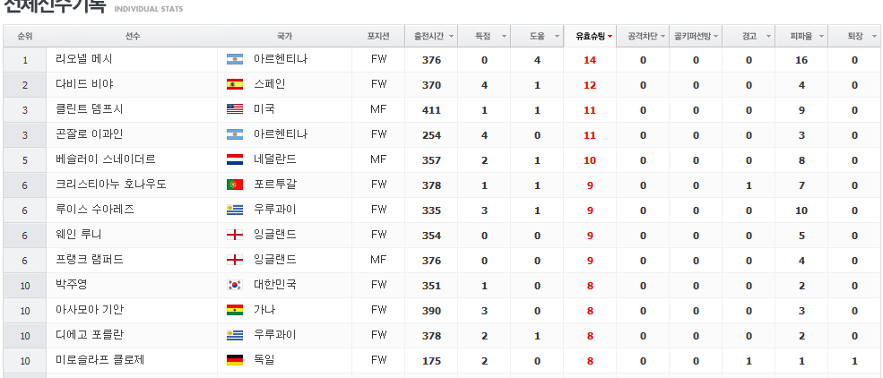 박주영선수.... 작성자No.9초봉|작성시간10.07.01|조회수3,698 목록 댓글 10 글자크기 작게가 글자크기 크게가 몰랏던 사실인데 ㅎㅎ 우리박주영선수가 세계최고선수들과함꺠 10위군요 ㅎㅎ 다음검색 현재 게시글 추가 기능 열기 북마크 공유하기 신고 센터로 신고 댓글 댓글 10 댓글쓰기 답글쓰기 댓글 리스트 작성자M.플라티니 | 작성시간 10.07.01 루니는 반성좀해야.. 작성자해리토리 | 작성시간 10.07.02 클로제는 주영이 반밖에 안뛰었는데 2골이네;; 작성자승렬아형이다!! | 작성시간 10.07.02 와 골대 맞은거랑 그리스 1:1 넣엇으면 답없엇겟다 작성자steven Gerrard | 작성시간 10.07.02 램파드가 그거아님?월드컵 슛팅숫자 비해서 골못넣은거 1위 작성자Captain Zidane | 작성시간 10.07.02 메시 피파울 16 댓글 전체보기