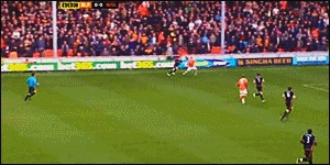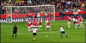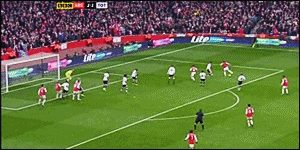 반페르시의 크로스를 완전히 비어있는 골대에 넣지 못하였다.