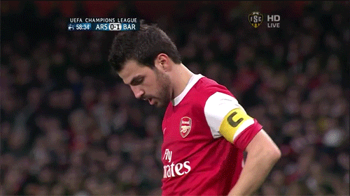아스널 전 주장 파브레가스 챔스에서 바르샤를만나고 선제골내주고 팀내 분위기가 떨어지자 힘내라고 팀내사기를 돋굼