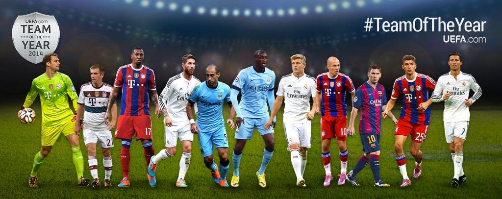 노이어; 람, 보아텡, 라모스, 사발레타; 야야 투레, 크로스, 로벤; 메시, 뮐러, 호날두