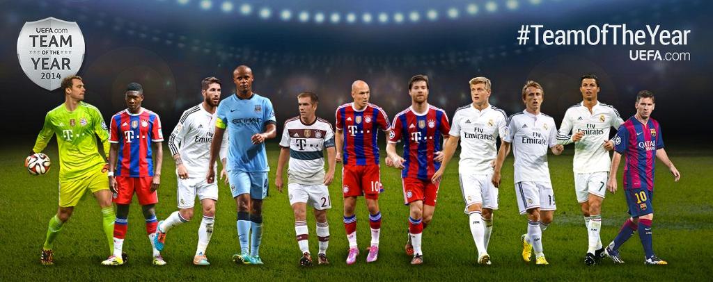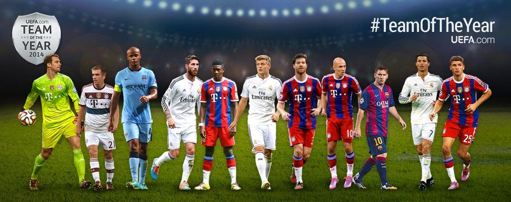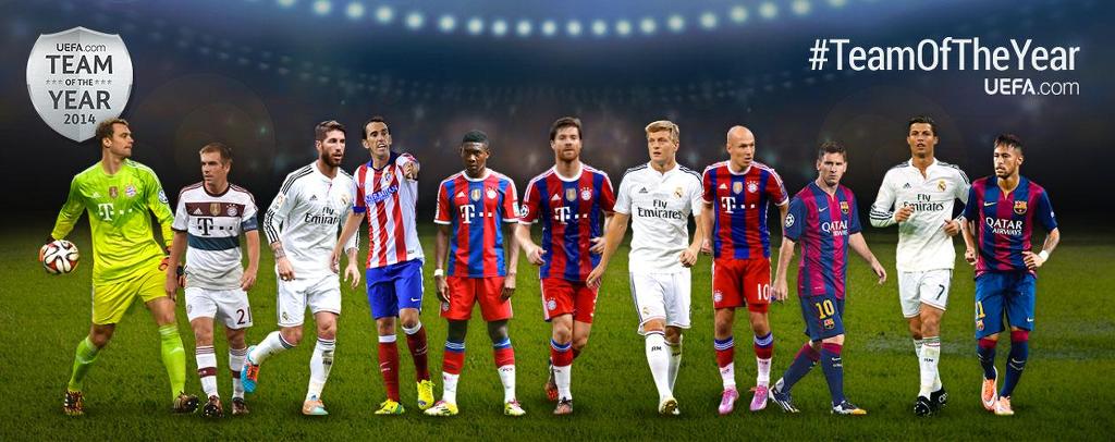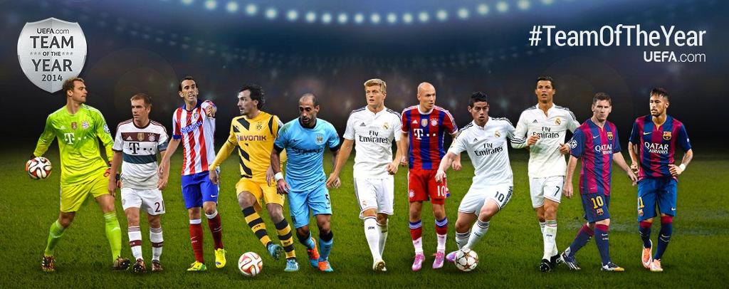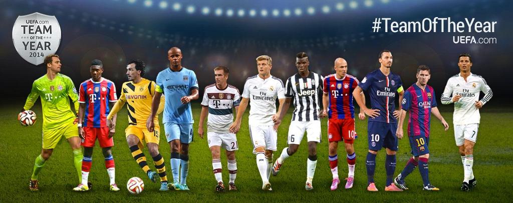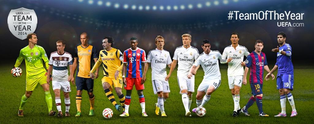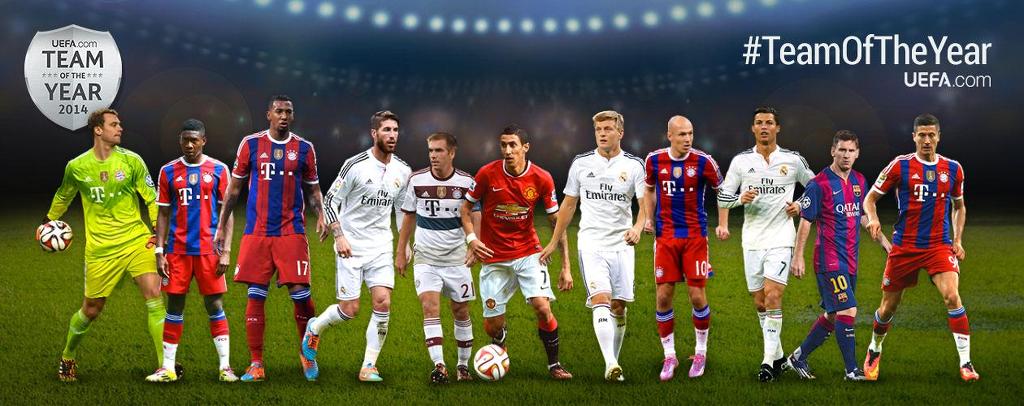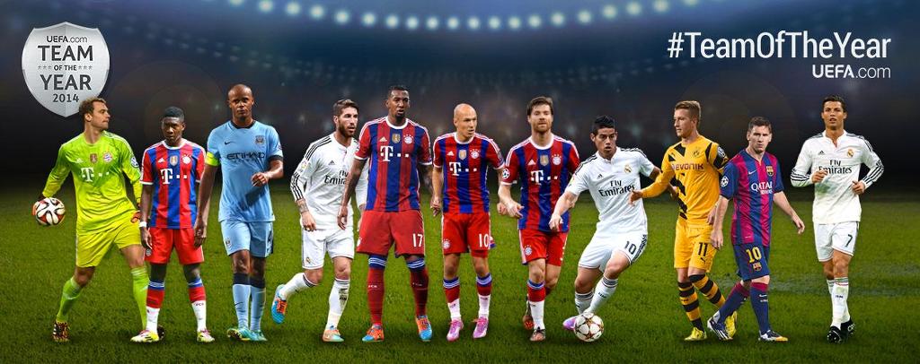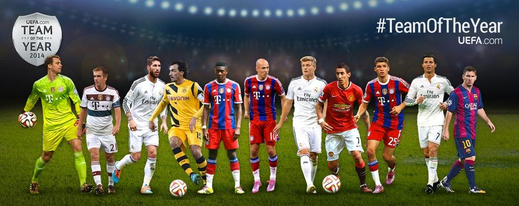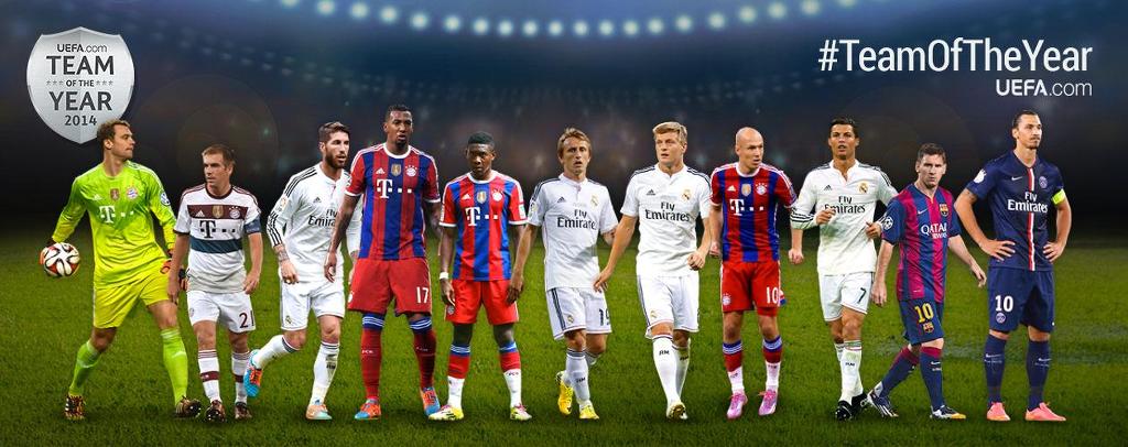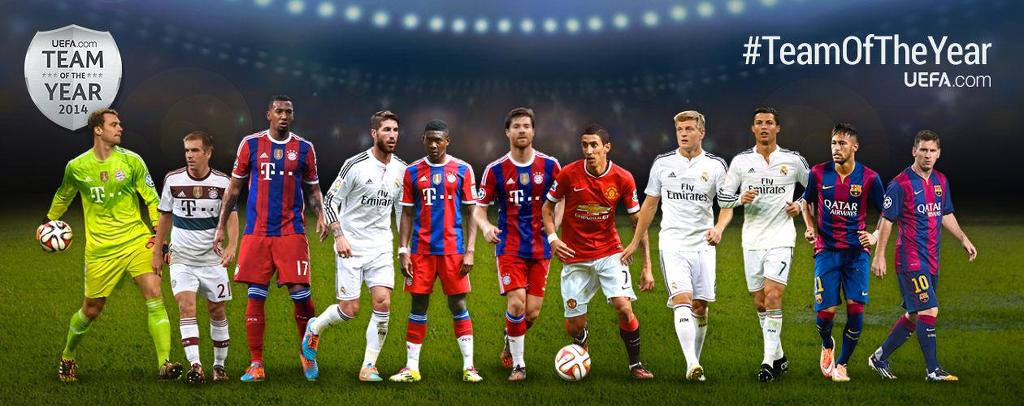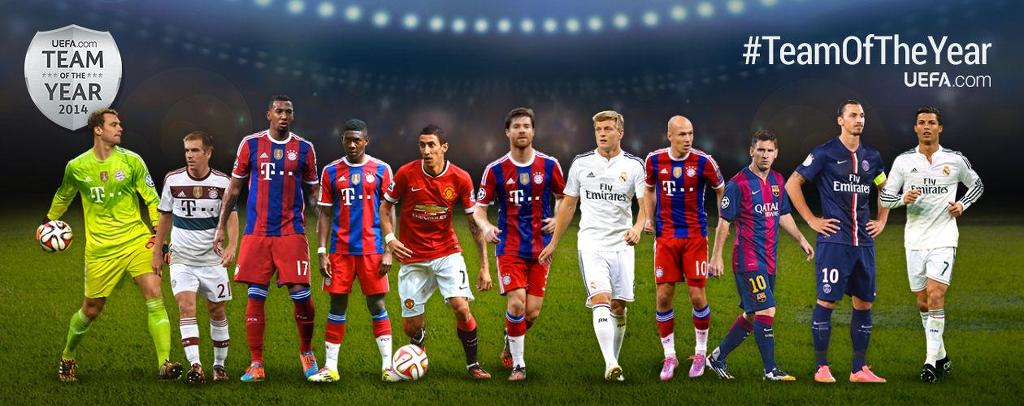 노이어; 람, 보아텡, 라모스, 알라바; 디 마리아, 크로스, 로벤; 호날두, 메시, 레반도프스키