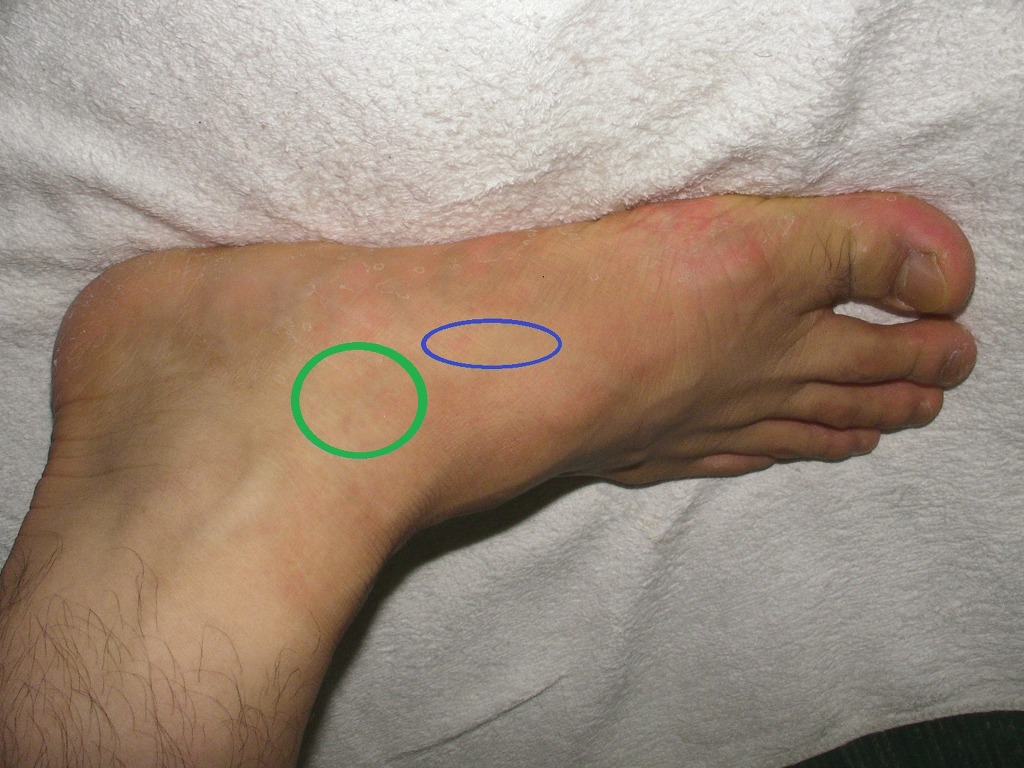 파란색은 강력한 감아차기슈팅에서 쓰는부위입니다 인스텝부위 바로안쪽에 평평한뼈있는공간요..