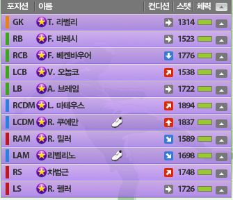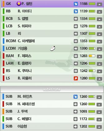 5. 쿠에만-> 수비수를 수미로 포변했는데요.. 장거리슛이 일품이고.. 특히 공중볼 다툼시 은근슬쩍 상대편을 밀쳐내고 받는 특징이 있음