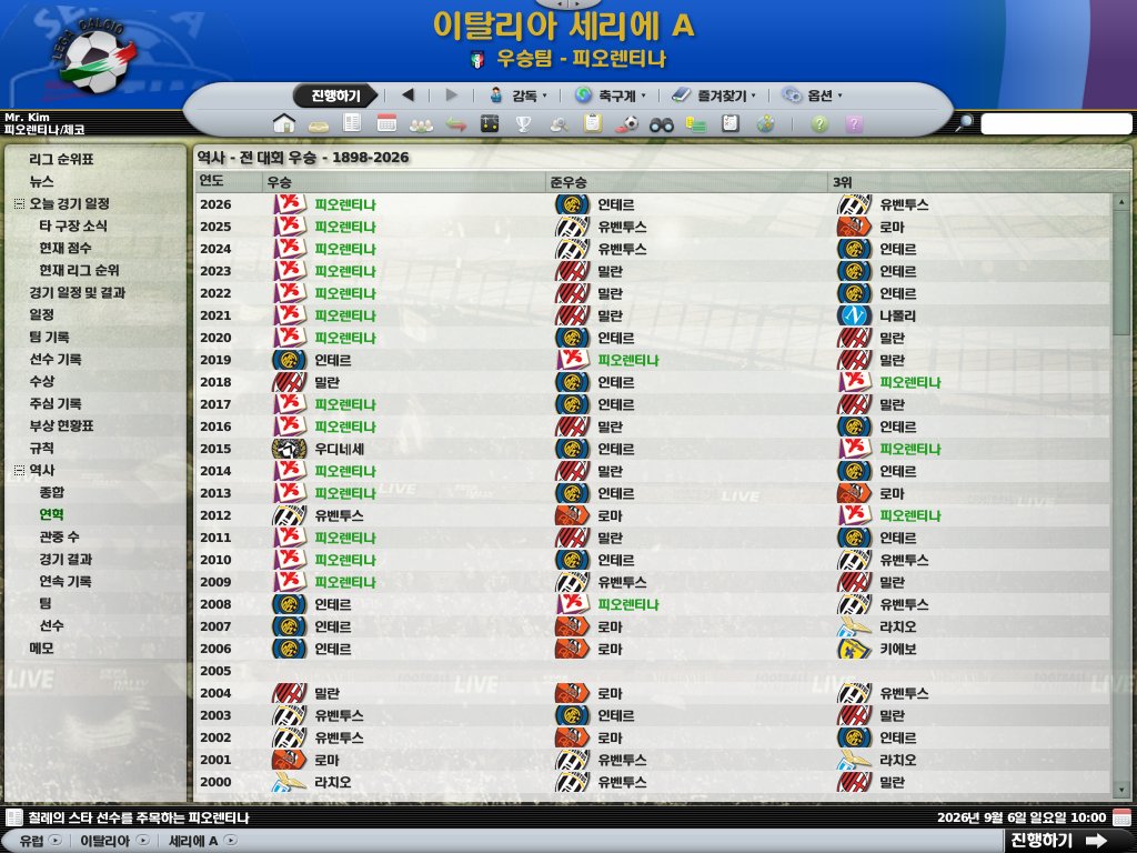 제팀인만큼 피오렌티나 강세/인테르 밀란 유벤투스 로마 꾸준함/