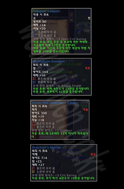 시대의 사냥꾼은 보석 2개를 장착할 수 있는 레벨제한 66의 레어아이템을 드랍한다.