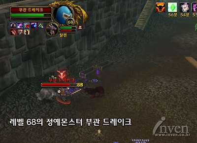 시간의 동굴 "던홀드 탈출" 인던에 진입하면 드래곤과 블러드엘프 NPC가 있다.