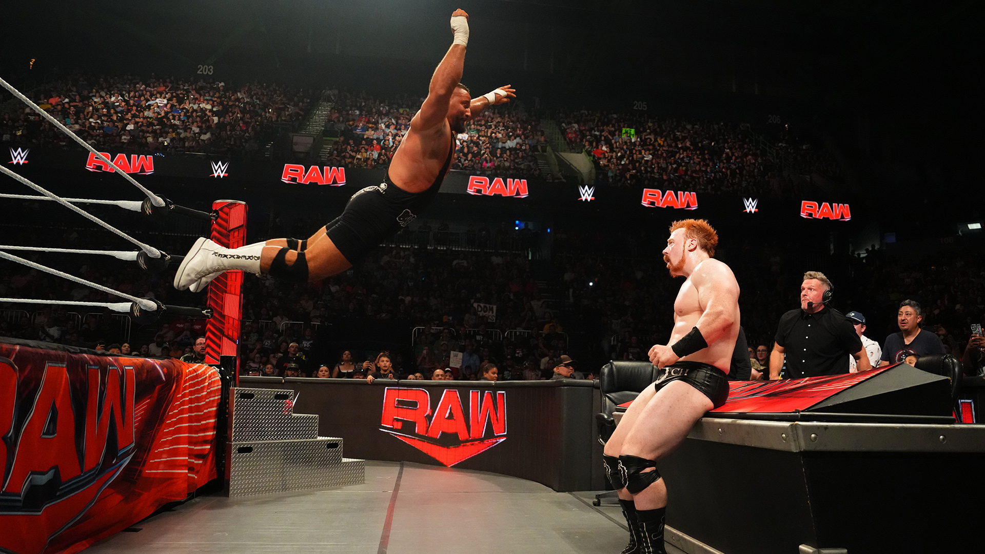 루드비히 카이저가 다시 쉐이머스를 공격하고 러닝 드랍킥을 시도하지만 브론 브레이커가 반대편에서 달려와 스피어