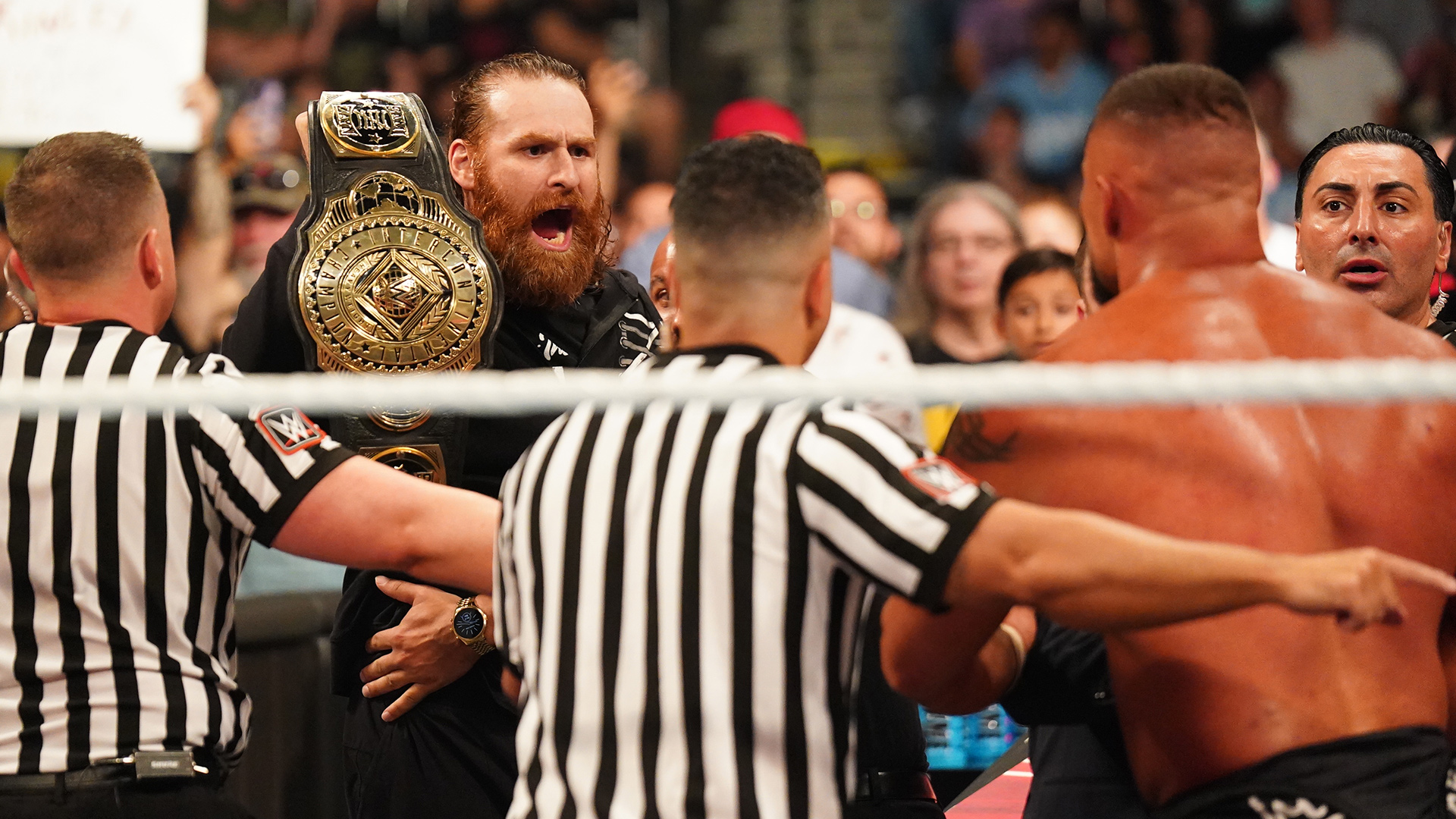 채드 게이블이 토자와 아키라를 건들고 맥신 듀프리의 목발을 링 밖으로 던져버린 다음 토자와 아키라의 뺨을 때림