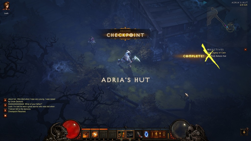 레아와 대화하면 아드리아의 흔적을 찾기위해 잠시동안 동행한다. 올드루인즈로 가면 레아가 철문을 열어주고 계속 진행하면 아드리아의 헛을 발견할수있다. 난장판이 된 집 한구석에 열려있는 비밀공간이 있는데 내려가자.