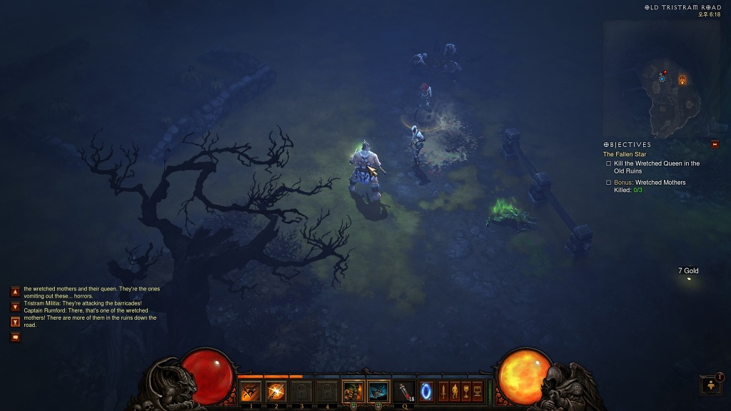 캡틴 럼포드가 wretched queen이라는 몬스터를 처치해달라고 하는데 이 퀘스트를 받음과 동시에 마을 한쪽 바리게이트가 부숴지면서 몬스터들이 난입한다. 적들을 모두 제거한뒤 부숴진 길을 따라서 진행한다. 길을 따라 진행하다보면 위 스샷처럼 노란 원으로 표시되는 몬스터(미니맵상에 붉은 점으로 표시)가 나오는데 이 몬스터는 보너스퀘스트로 3마리 제거하는 퀘스트이다. 보너스 퀘스트지만 클리어하면 경험치를 주므로 가는 길에 보이는대로 잡아주자. 중간에 미니던전도 나오는경우가 있는데 메인 퀘스트에는 영향이 없으니 갈지 안갈지는 자유롭게 선택하자.