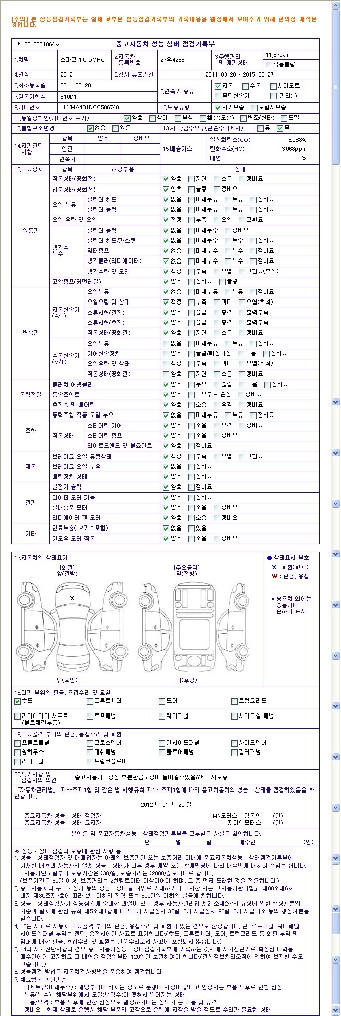 | 사고유/무 | 무사고 | 튜닝여부 | 튜닝 흔적 없습니다. |
