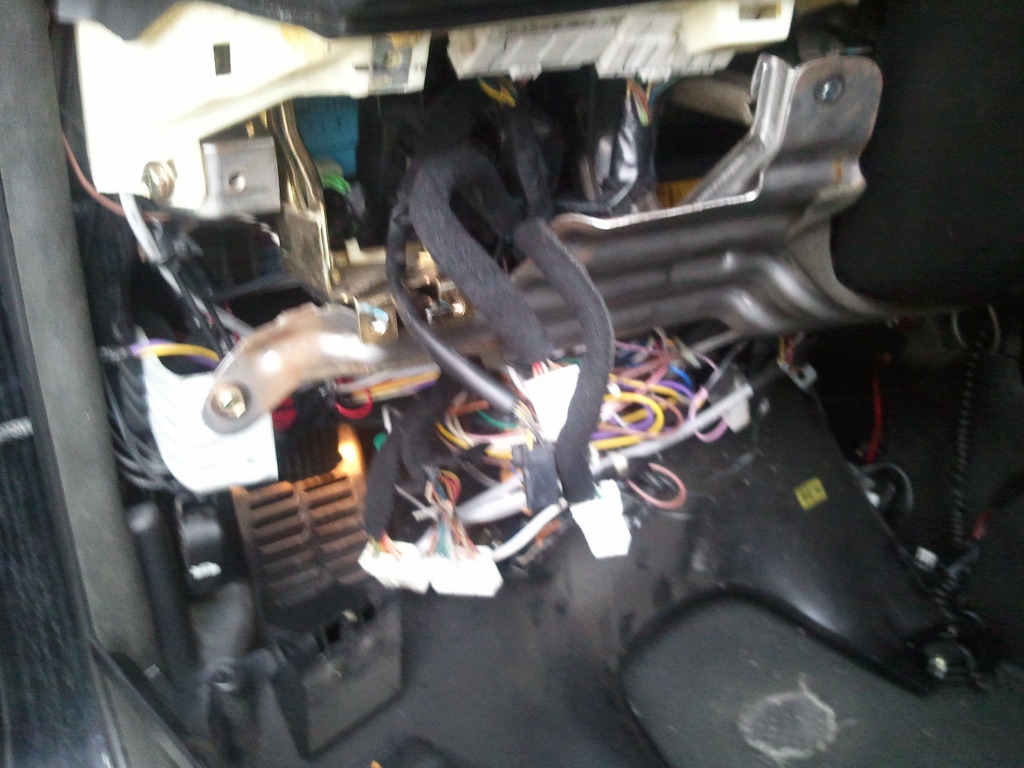 조수석 부분, 그리고 운전석밑에부분 배선컨넥터를 다분해하여야 합니다. 운전석 휴즈박스 컨넥터가 잘빠지지않아서 고생했습니다. 분해하기전에 컨넥터에 표시를해두면 조립할때 좀더빨리 작업이됩니다.