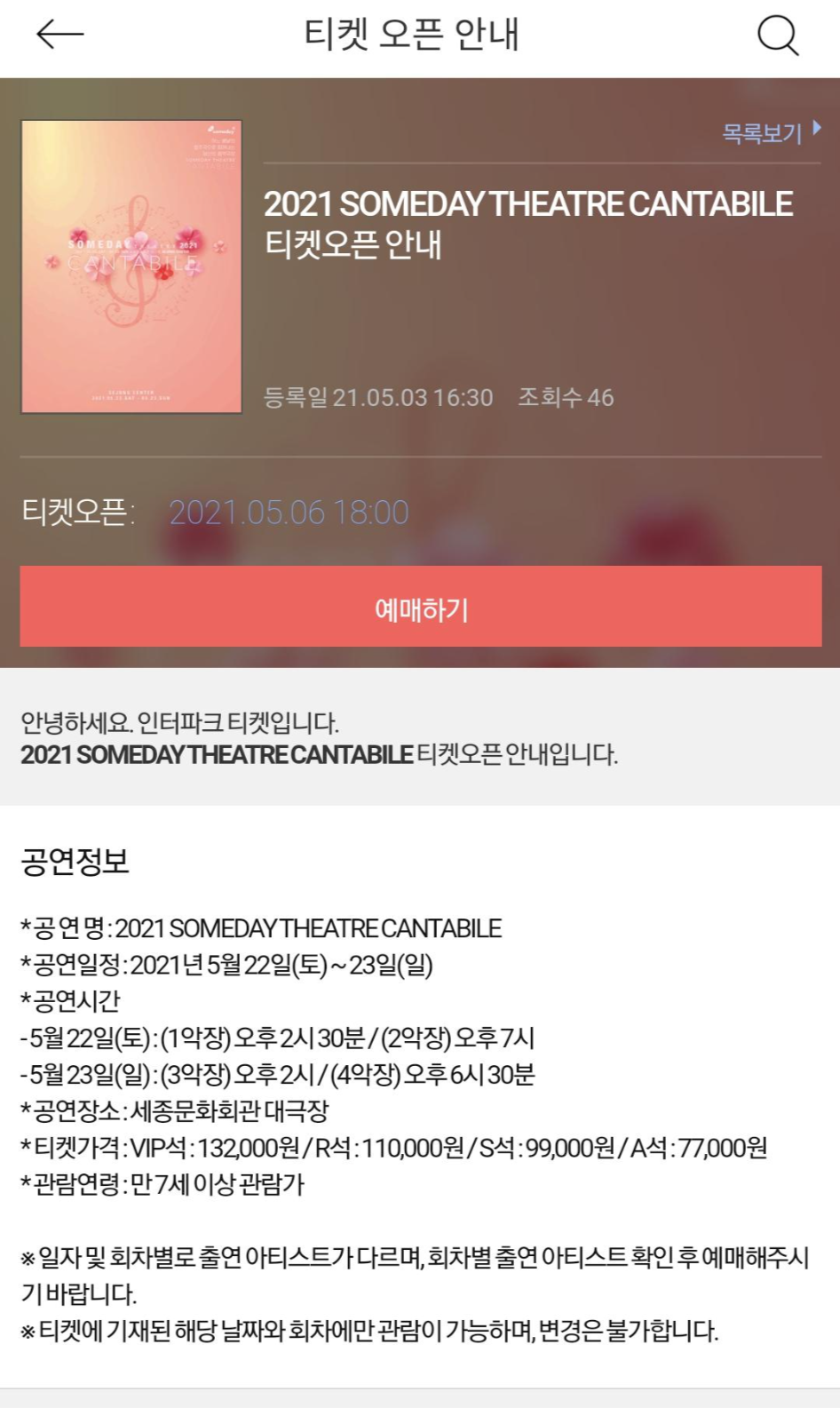 2021 SOMEDAY THEATRE CANTABILE 이거 오프라인공연인가봐요 작성자핑크반지|작성시간21.05.03|조회수680 목록 댓글 2 글자크기 작게가 글자크기 크게가 다들 보셨어요?드디어 오프공연 ㅠㅠ 세종문화회관이면 좌석 꽤 있겠죠???ㅠㅠㅠㅠ두근두근 http://ticket.interpark.com/webzine/paper/TPNoticeView.asp?bbsno=34&pageno=1&stext=&no=39801&groupno=39801&seq=0&KindOfGoods=TICKET&Genre=&sort=WriteDate 다들 티케팅성공합시댜 ㅠㅠㅠㅠ 다음검색 현재 게시글 추가 기능 열기 북마크 공유하기 신고 센터로 신고 댓글 댓글 2 댓글쓰기 댓글 리스트 작성자찌원 | 작성시간 21.05.03 너무 좋은데 단독오프가 아니네요 ㅠㅠ 답댓글 작성자보헤미안 | 작성시간 21.05.04 그게 너무 아쉽네요.. ㅠ 댓글 전체보기