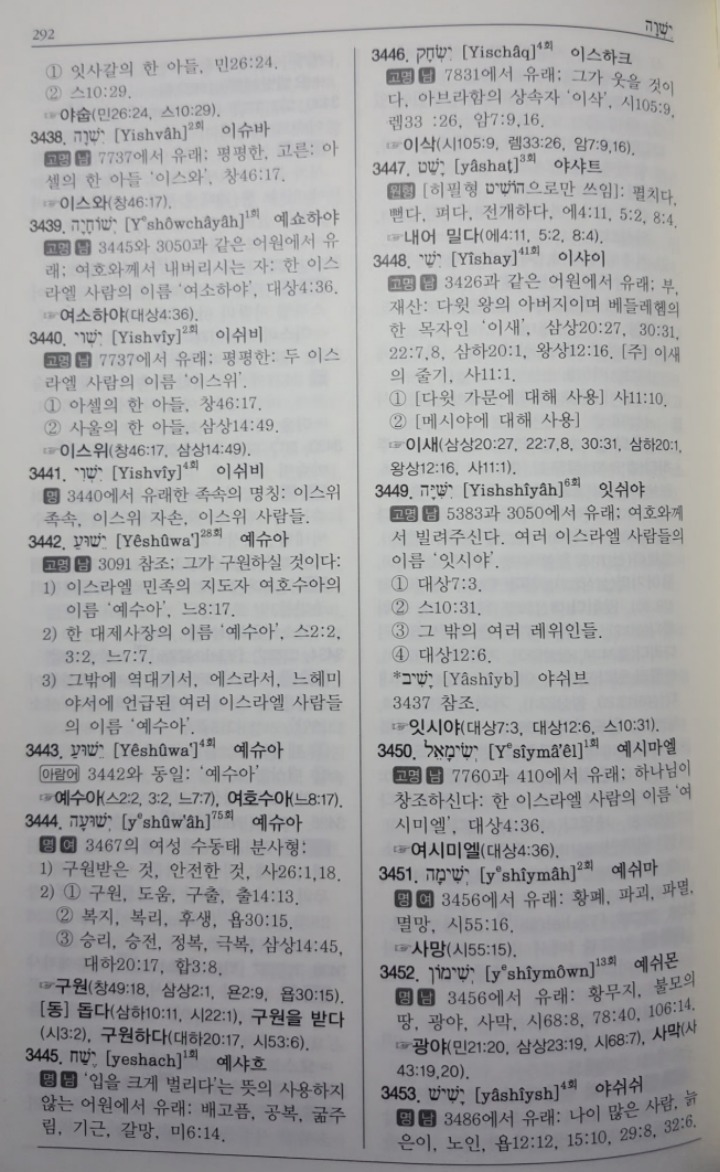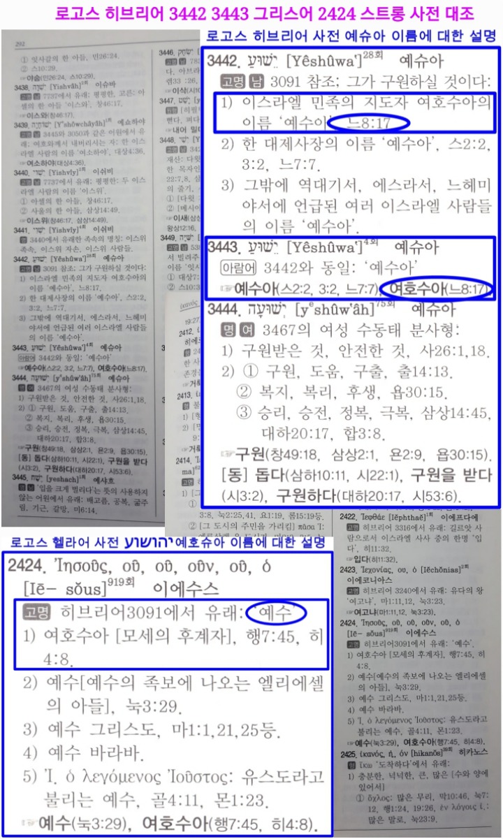 히브리어 사전도 스트롱번호 3442와 3443번을 통해서 여호수아(יהושע)의 이름을 '예슈아=ישוע'라고 밝히고 있습니다.