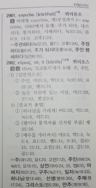'퀴리오스(Κυριος)'라는 단어의 뜻은 ‘주, 주인, 구주, 선생...’등이라고 정의하고 있습니다.
