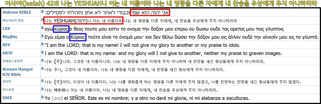 예슈아님의 말씀 : 8 나는 ✔✔☞YESHUAH(יהוה)니 이는 ✔✔☞내 이름이라 나는 내 영광을 다른 자에게, 내 찬송을 우상에게 주지 아니하리라