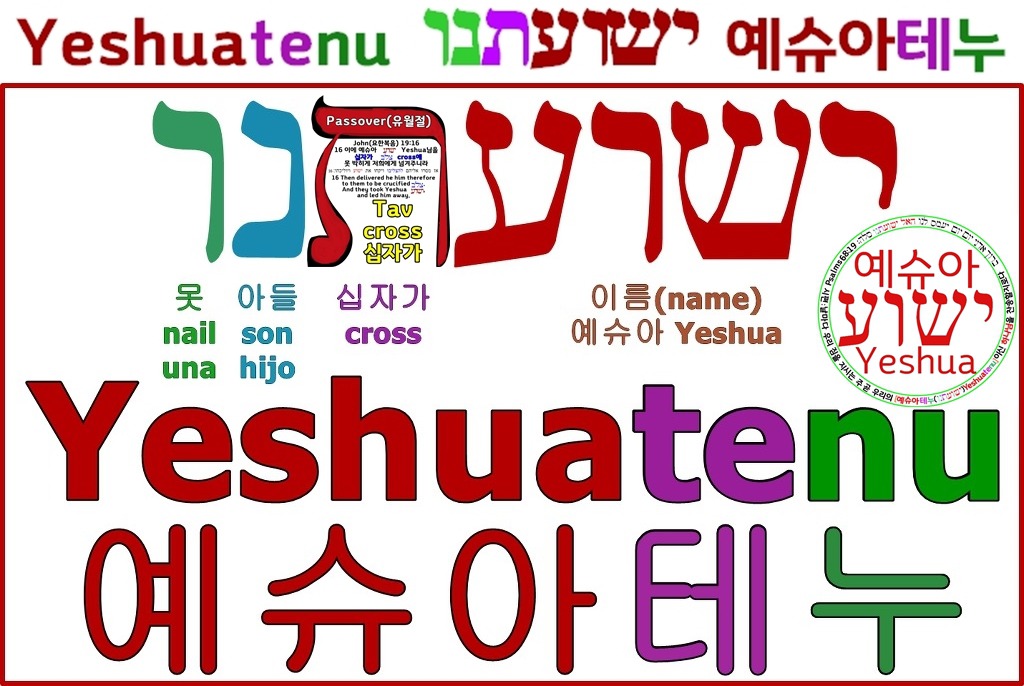온 우주 만물을 창조하신 온 우주에 홀로 유일하신 단한분의 구주 구세주 구원자 되시는 성령이시며 말씀이신 창조주 하나님 아버지의 거룩하신 이름인 히브리어 네 자음"יהוה"의 발음은 말씀이 육체가 되어 오신 "예슈아(ישוע)Yeshua"님의 거룩하신 이름과 같습니다.