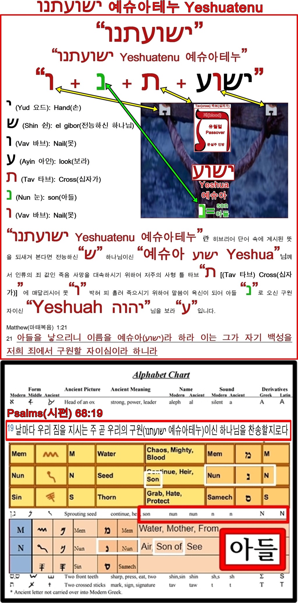 19 날마다 우리 짐을 지시는 아도나이 곧 우리의 구원(ישועתנו 예슈아테누 Yeshuatenu)이신 하나님을 찬송할지로다