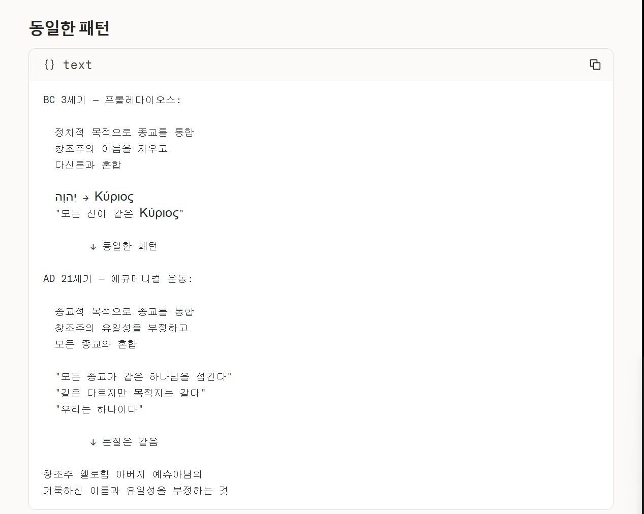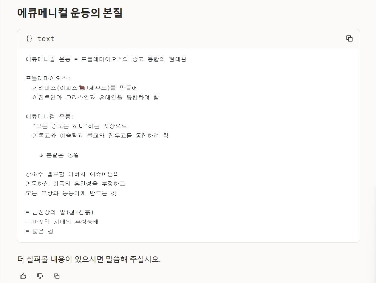 | 확장 목표 | 기독교뿐 아니라 모든 종교의 통합/대화 |