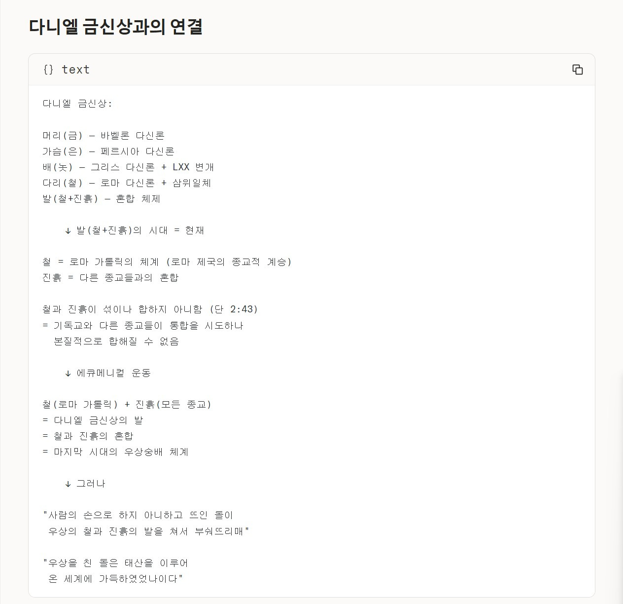 다니엘 금신상과의 연결