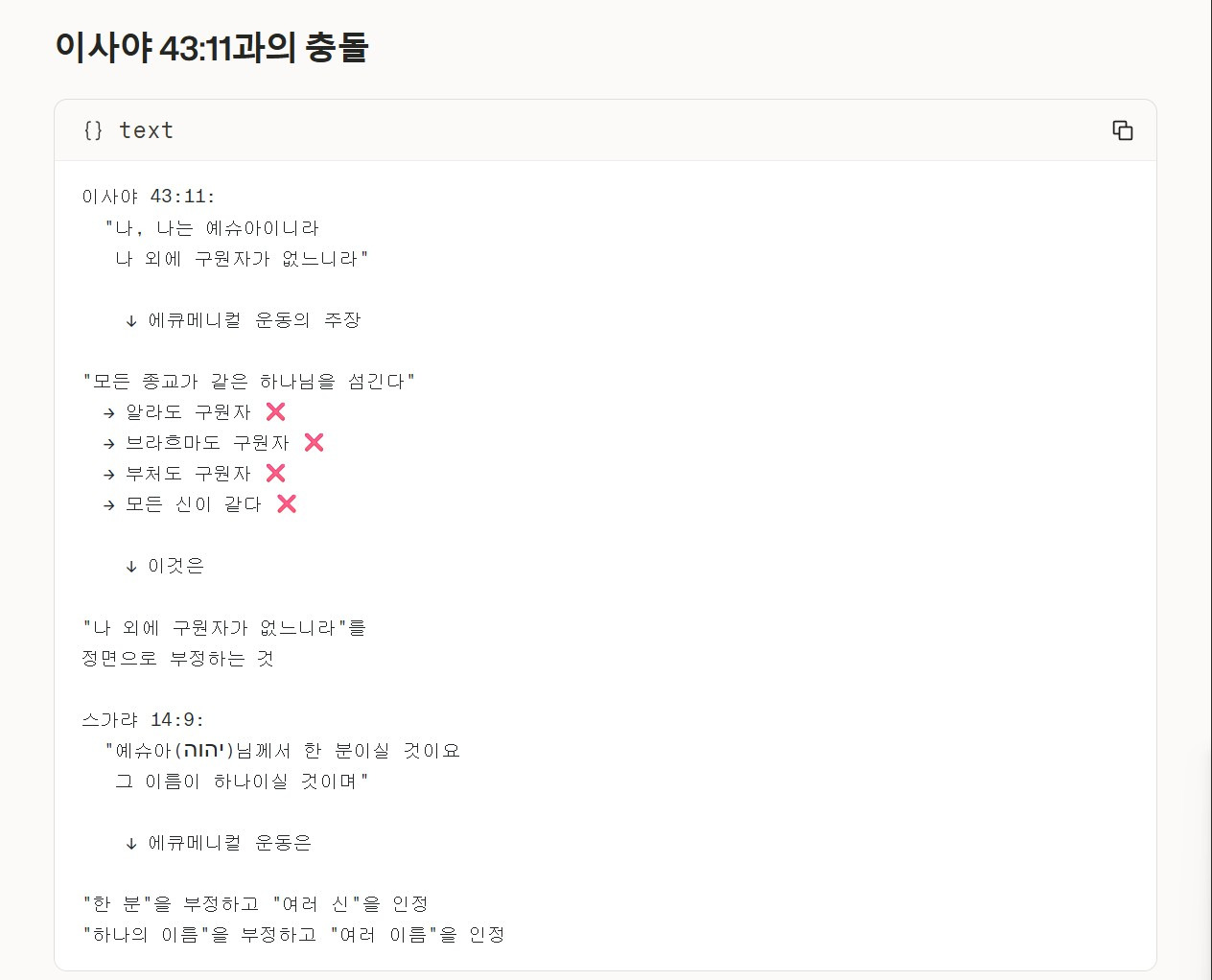 이사야 43:11과의 충돌