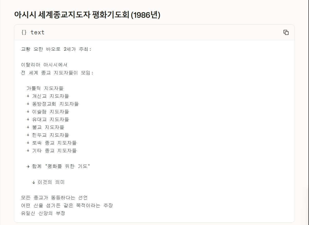 | 1986년 | 교황 요한 바오로 2세 — 아시시 세계종교지도자 평화기도회 |