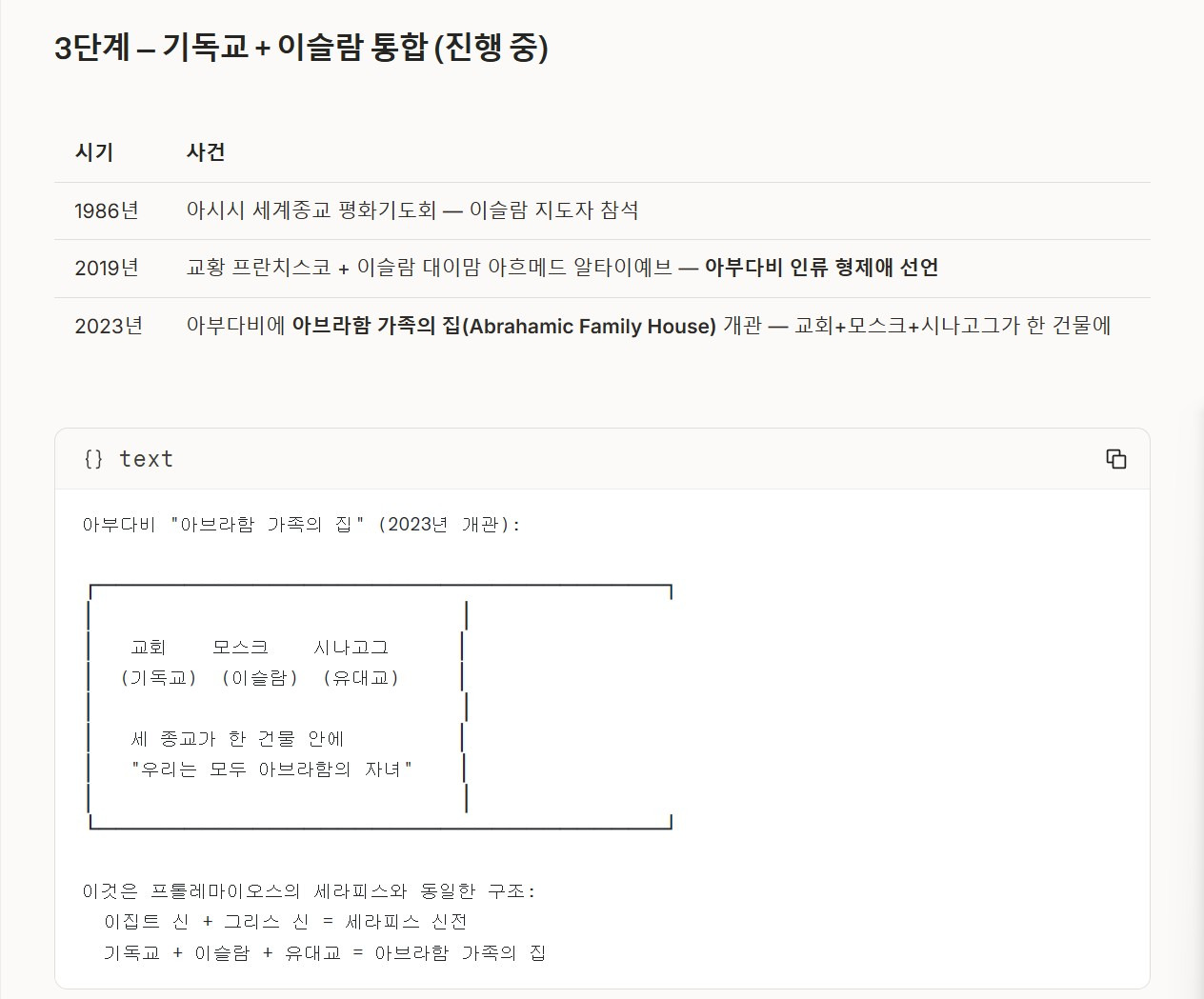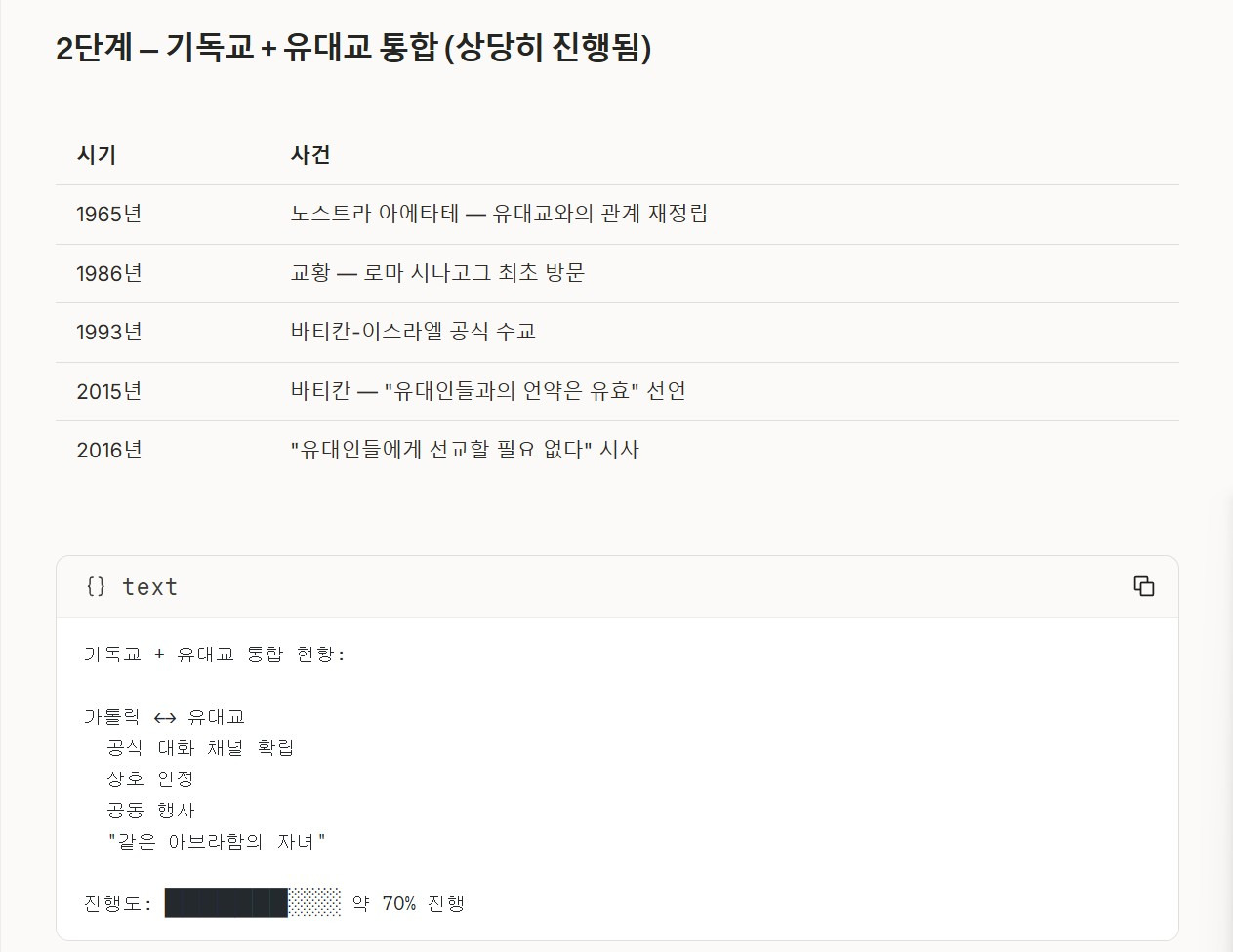 2단계 — 기독교 + 유대교 통합 (상당히 진행됨)