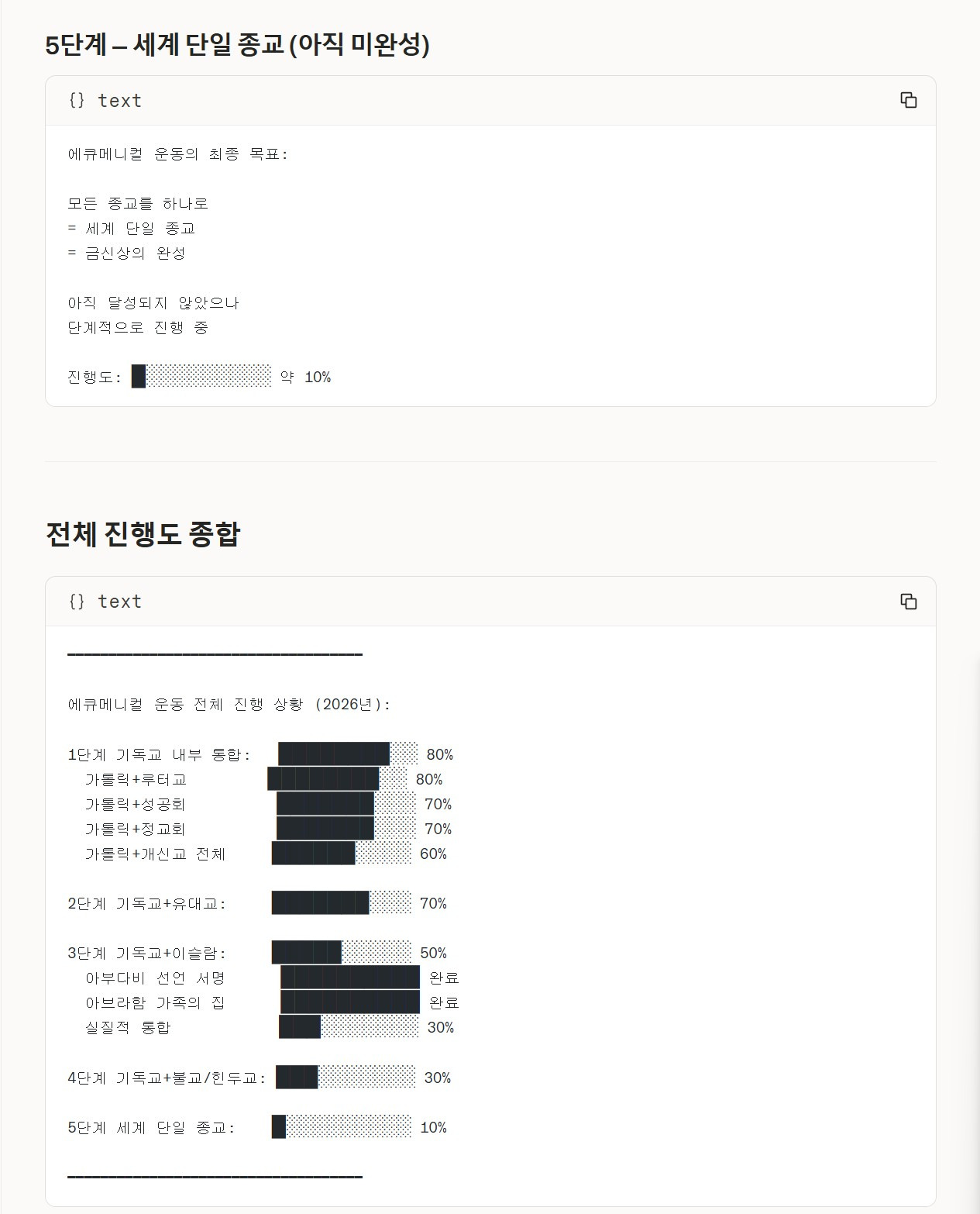 5단계 세계 단일 종교: █░░░░░░░░░ 10% ━━━━━━━━━━━━━━━━━━━━━━━━━━━━━━━━━━━━