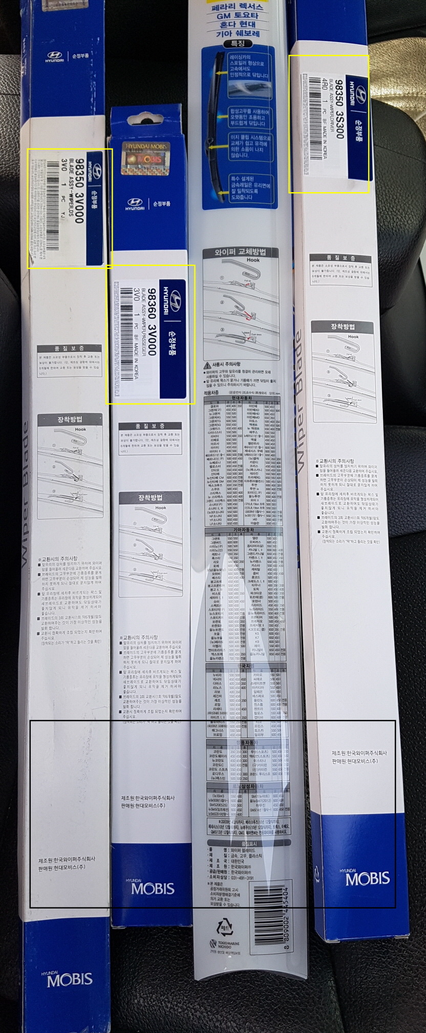 검은색 네보난곳에 보시면 전부다 제조공장이 한국와이퍼주식회사 입니다.